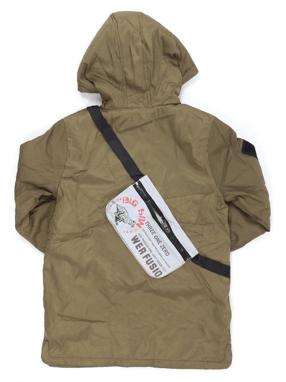 Материал слежался (есть следы от молнии). Заржавели клепки, стерлось покрытие.