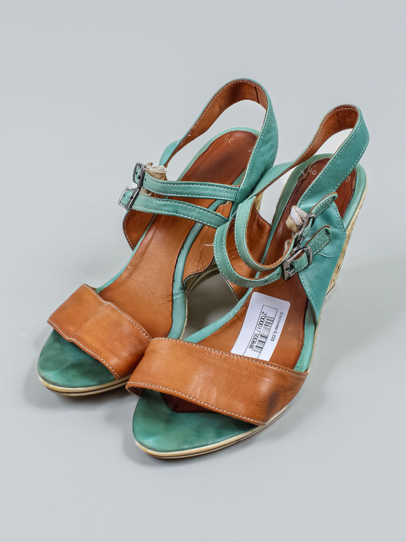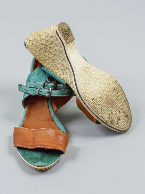Износ подошвы. Есть загрязнения. На ремешках вытянулась резинка. Местами отклеивается стелька. Есть небольшие потертости материала.