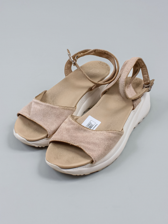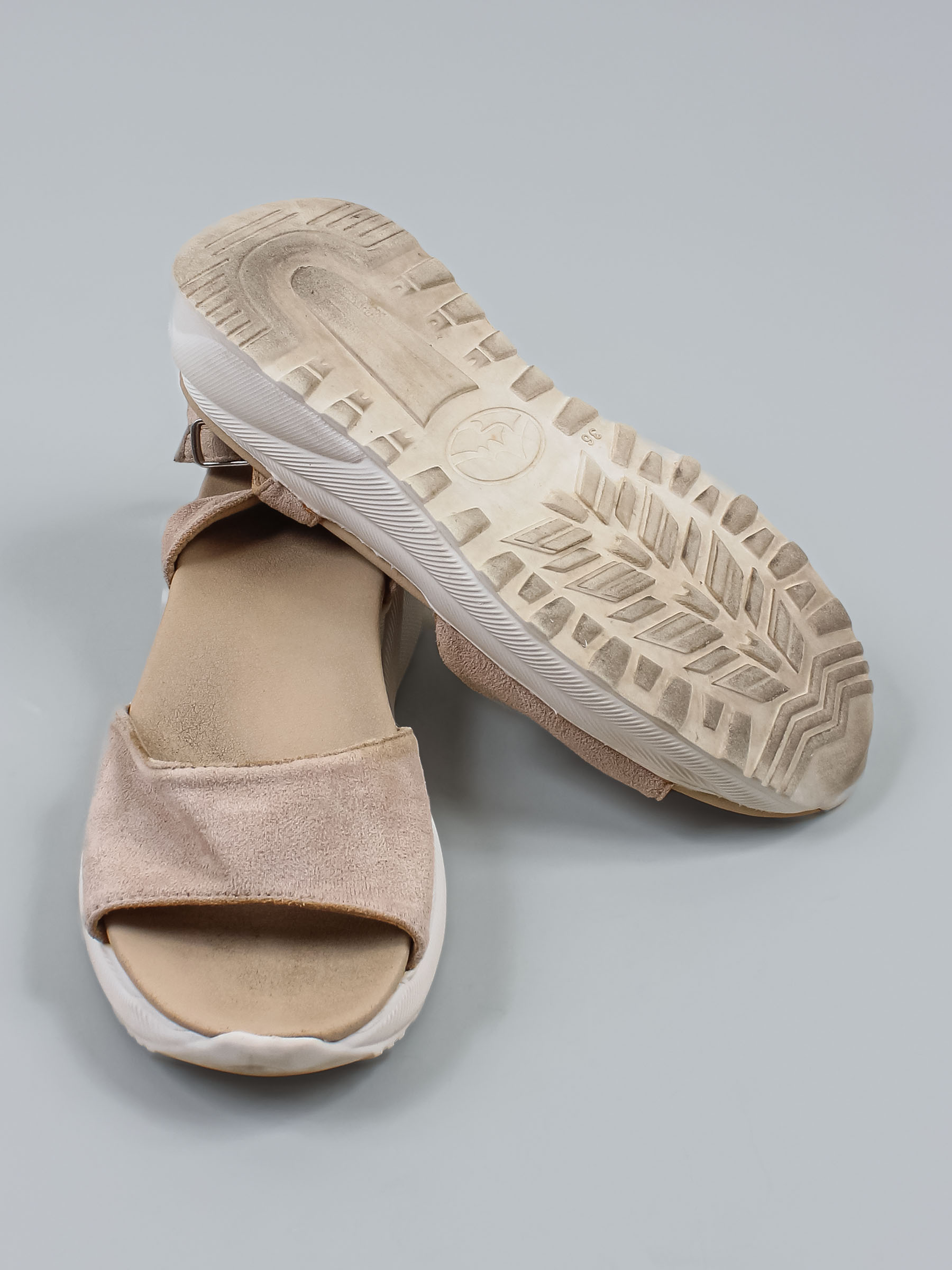 Маркировка на изделии отсутствует. Размер указан на основании замеров. Износ подошвы. Есть заломы на ремешках. Есть поверхностное загрязнения, небольшие потертости материала.