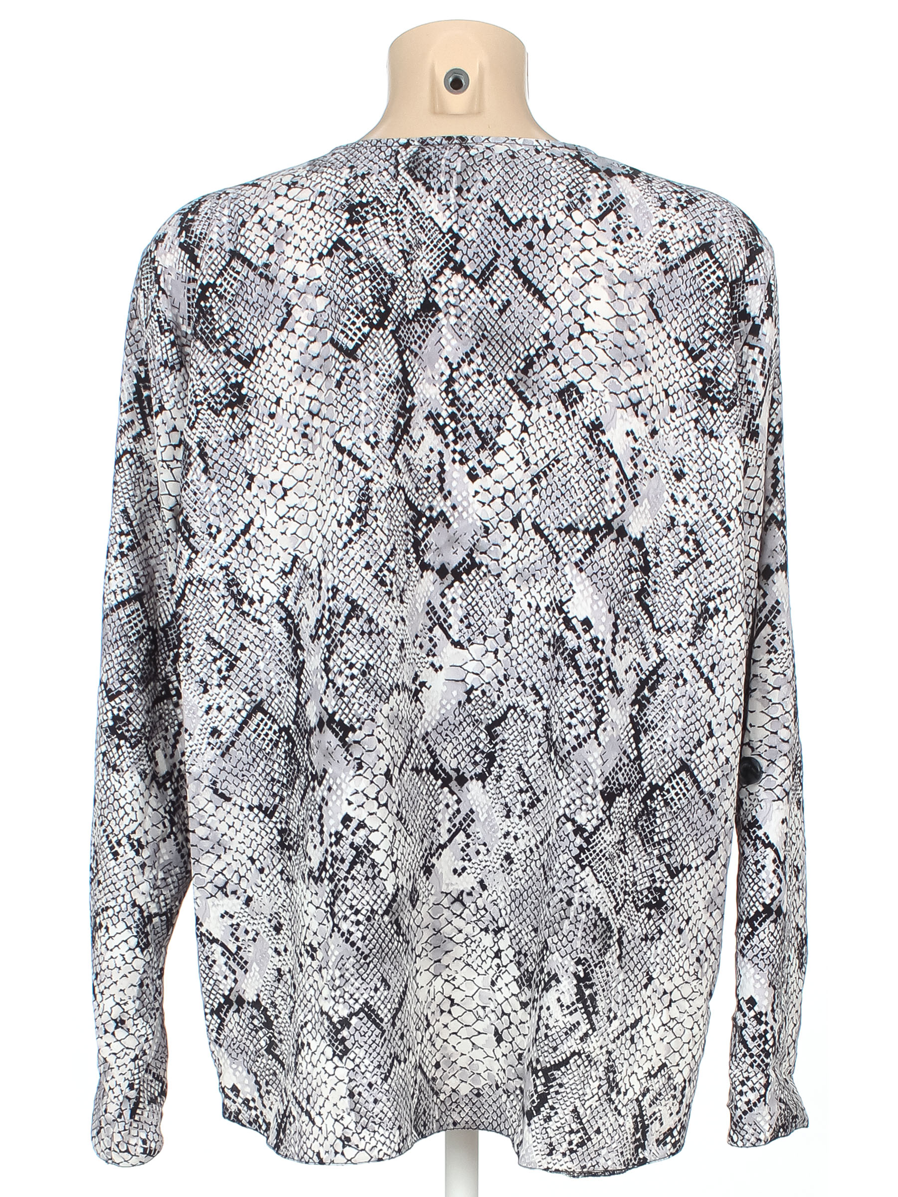 Маркировка на изделии отсутствует. Размер указан предположительно (52-54). В области подмышек есть загрязнения, немного потускнел цвет ткани.
