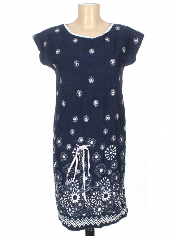 Маркировка на изделии отсутствует. Размер указан на основании замеров. Ткань местами потускнела. Шнурок в талии полинял.