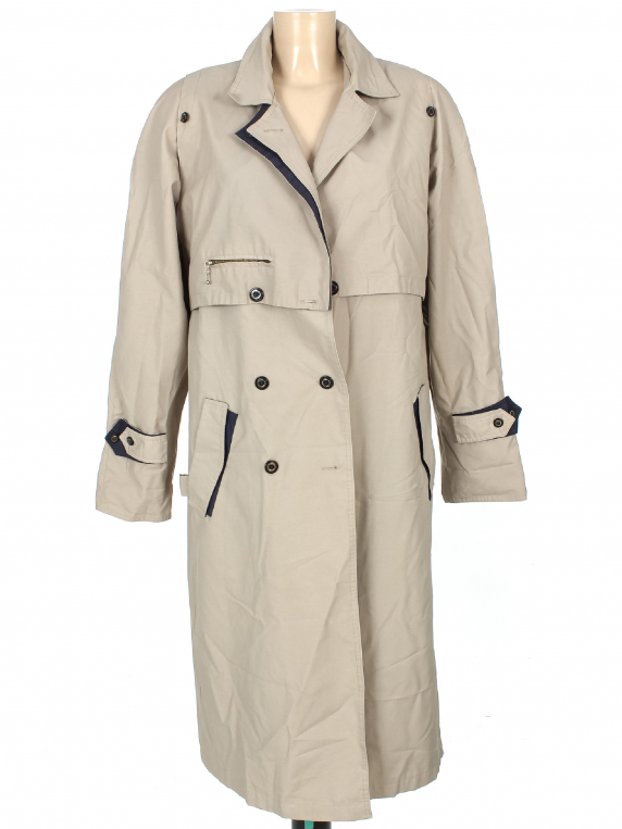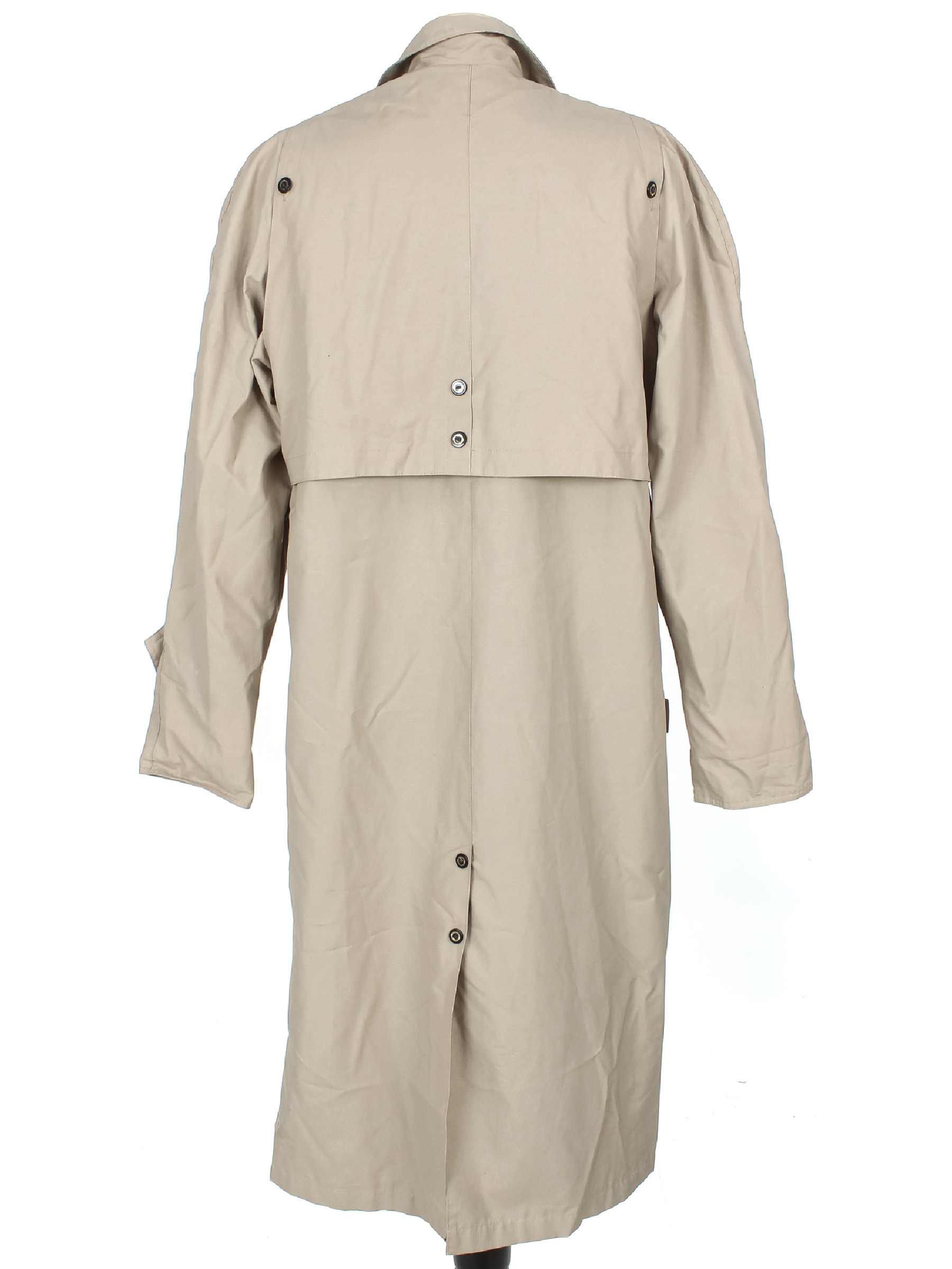 Маркировка на изделии L. Размер указан на основании замеров (54-56). Есть мелкие катышки, дырка на подкладе, небольшое пятно на рукаве. Пояс в комплекте. Ткань местами лоснится.