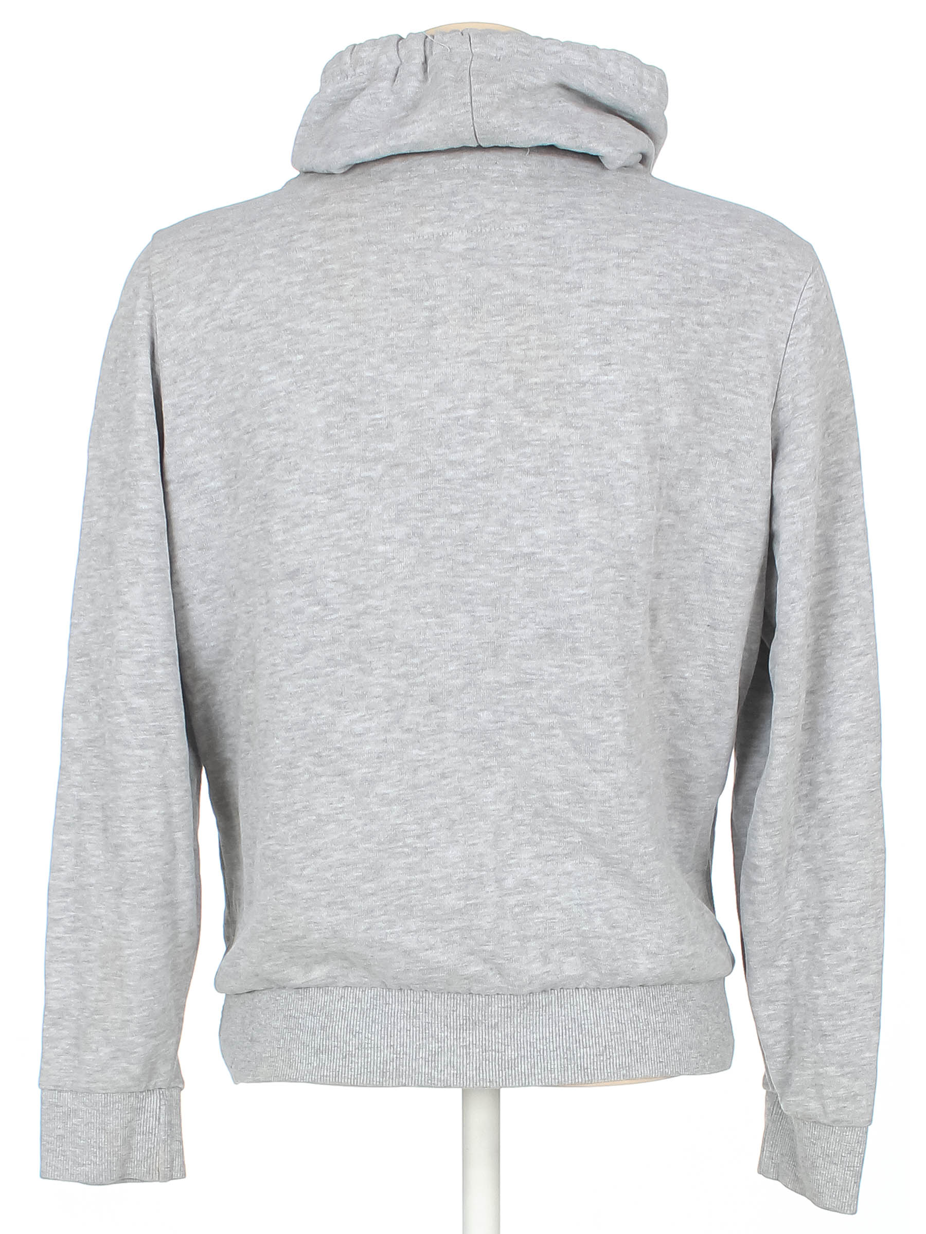 Ткань вытянулась, катышки. Есть загрязнения (возможно отстирается). По трескалась краска на принте.