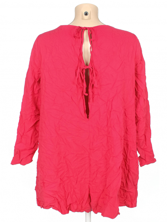 По горловине немного из окантовки вылез материал. На спине немного распустилась строчка по шву. Изделие свободного кроя.
