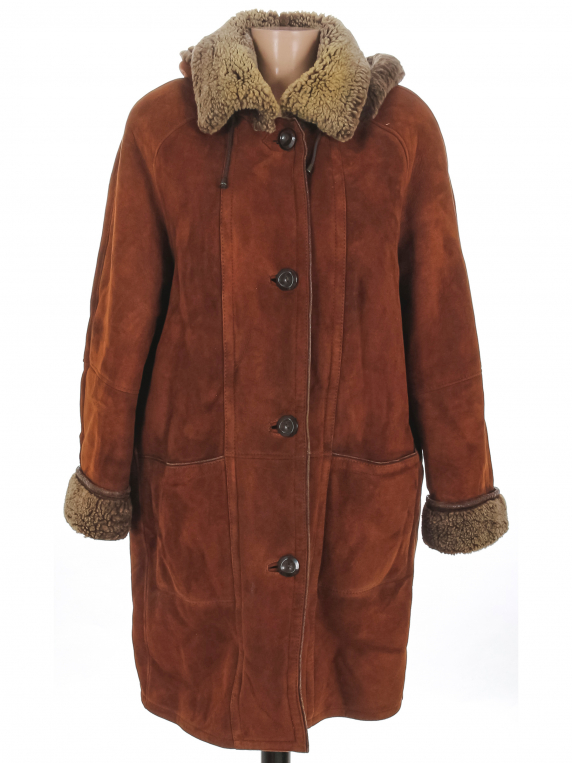 На изделии есть знак "кожа". Есть пятнышки, загрязнения, потертости/трещины материала, местами слежался/скатался мех.