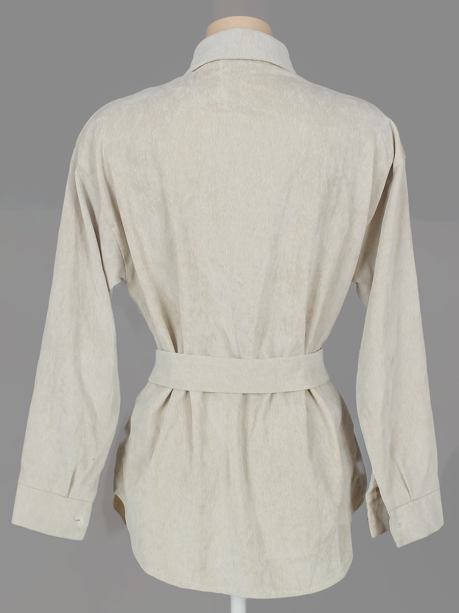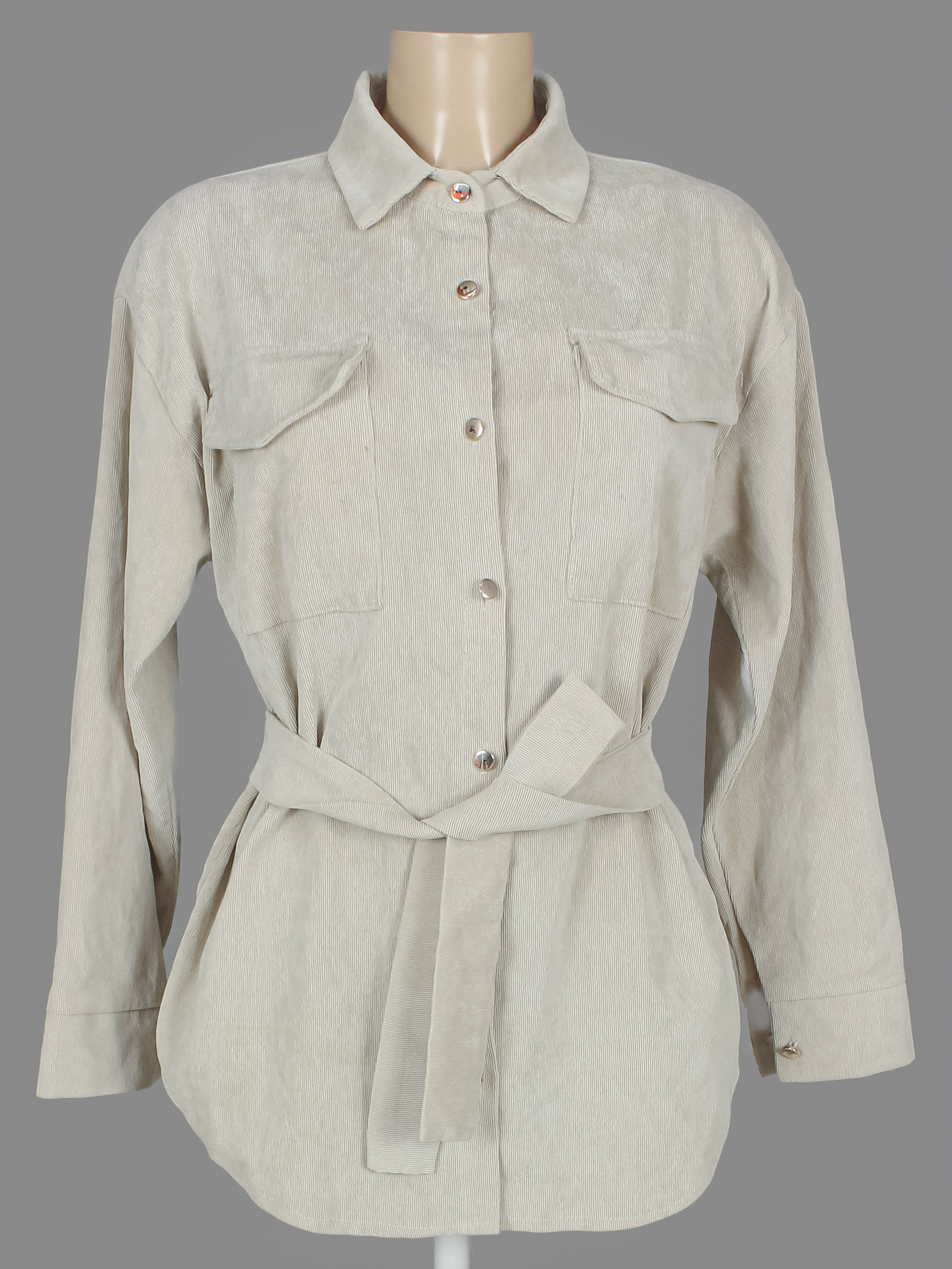 Маркировка на изделии отсутствует. Размер указан на основании замеров (46-48). Замер рукава указан от горловины. Есть катышки на внутренней части изделия, пятнышки/загрязнения. На пуговицах стирается покрытие.