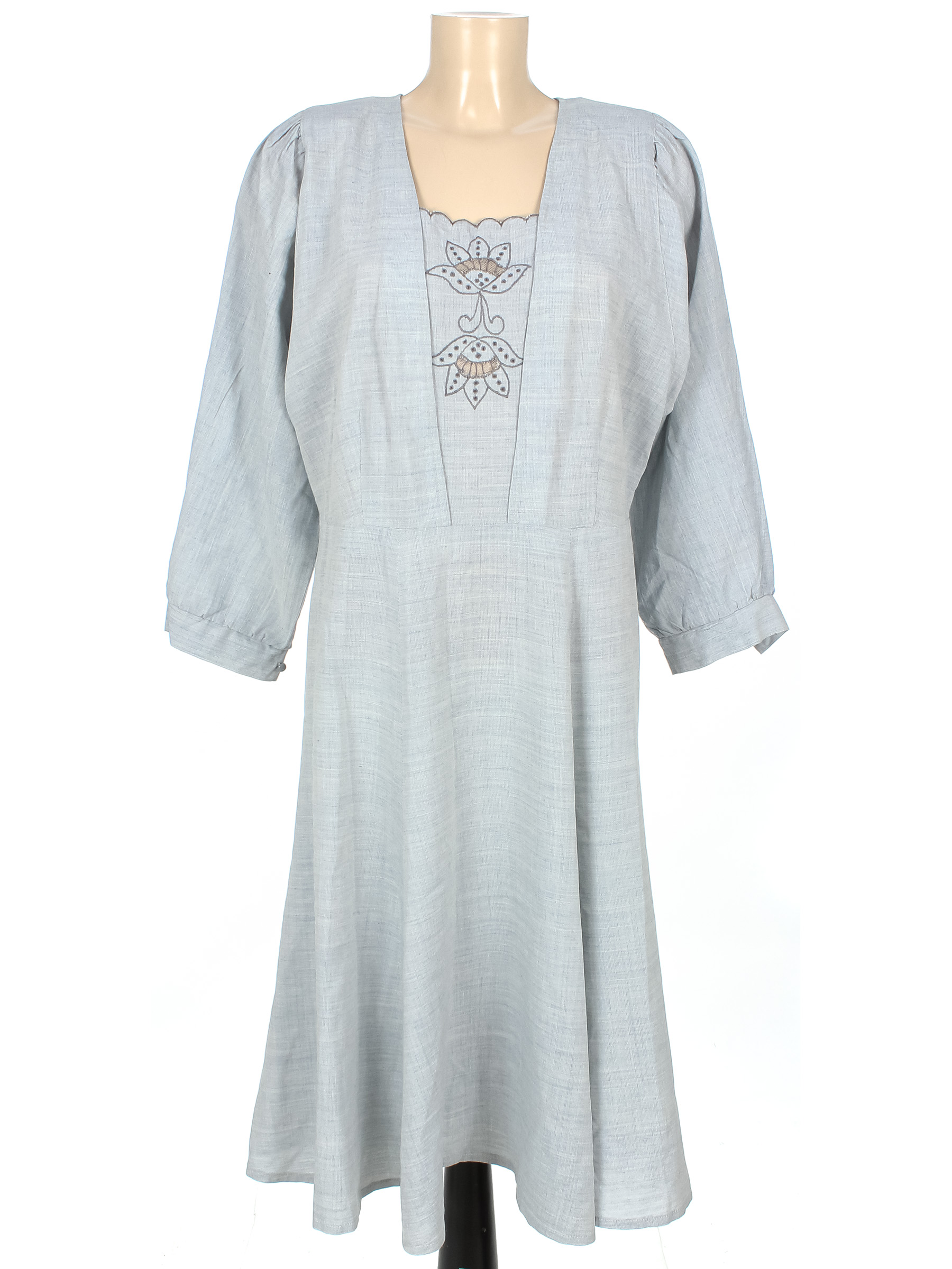 Маркировка на изделии отсутствует. Размер указан предположительно (48-50). По низу изделия есть мелкая дырочка, немного потускнел цвет ткани.