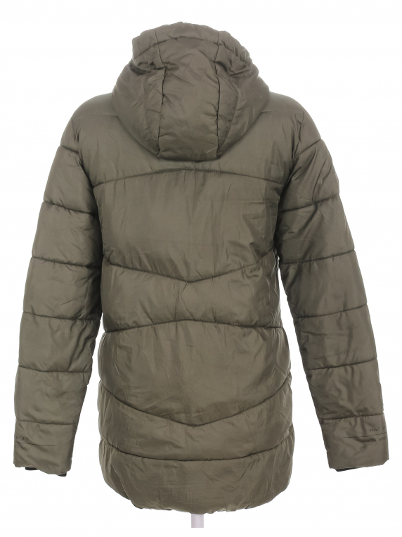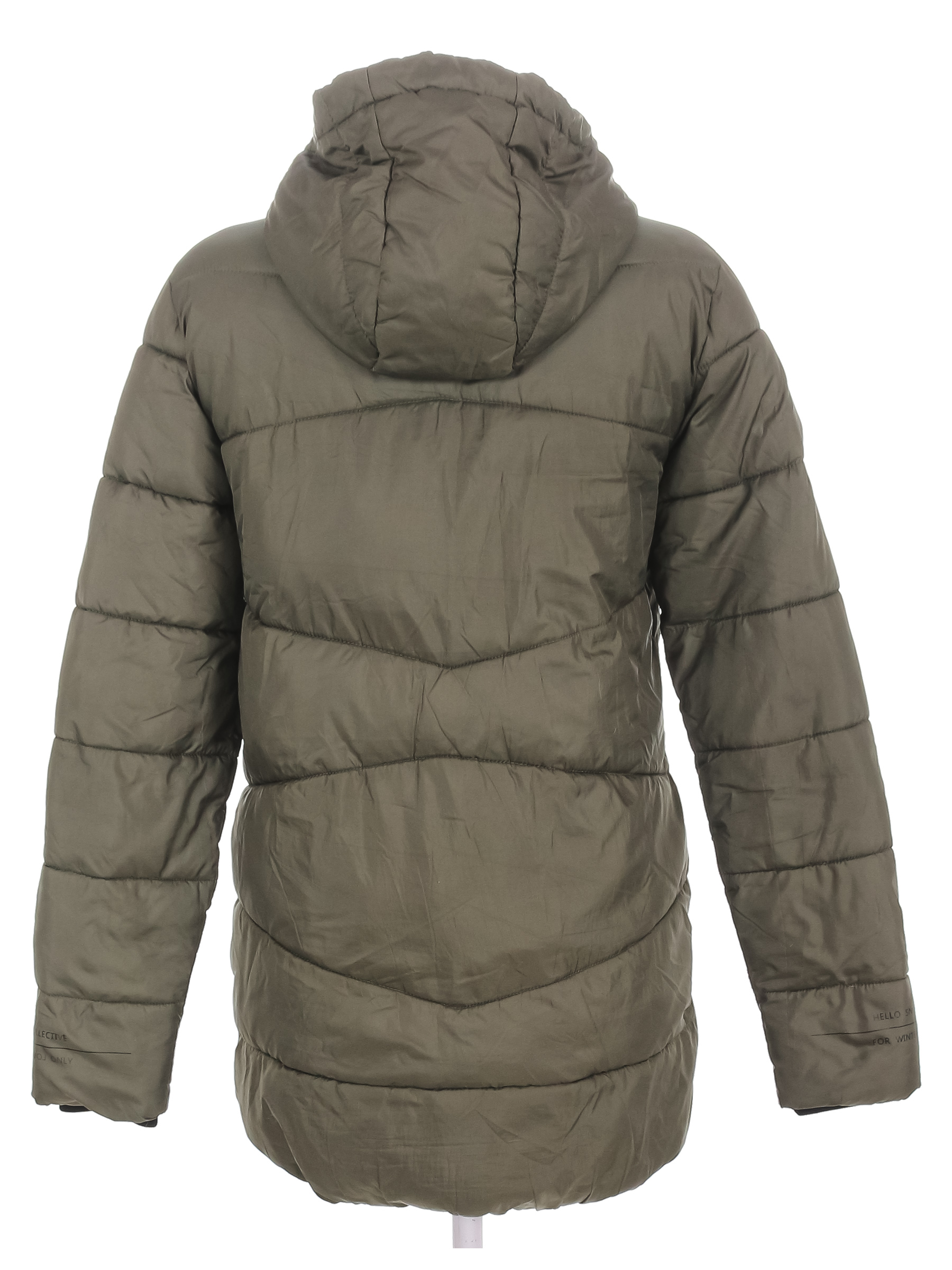 Незначительно вытянута ткань по швам на подкладке. Есть затяжки. Наполнитель местами слежался.