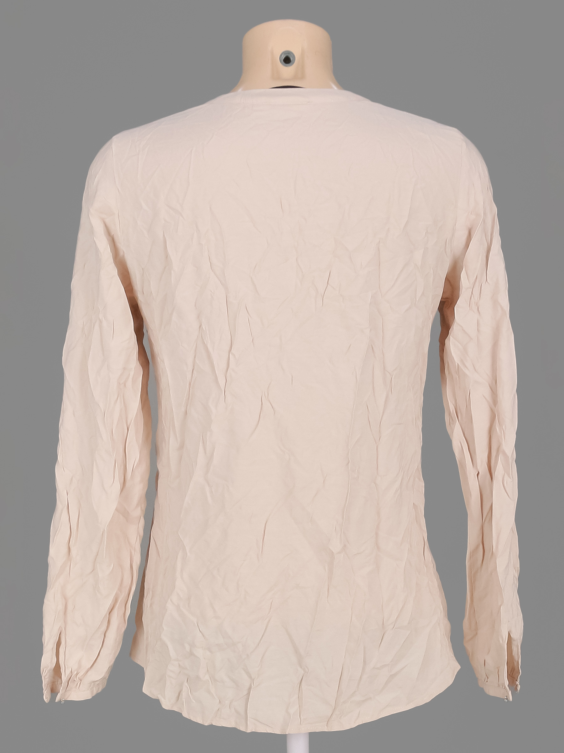 Маркировка на изделии отсутствует. Размер указан на основании замеров (42-44). На рукаве есть мелкие пятнышки.