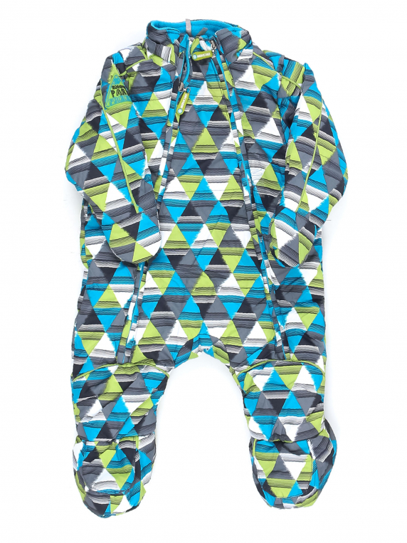 Нет капюшона. Спереди есть небольшое загрязнение.
