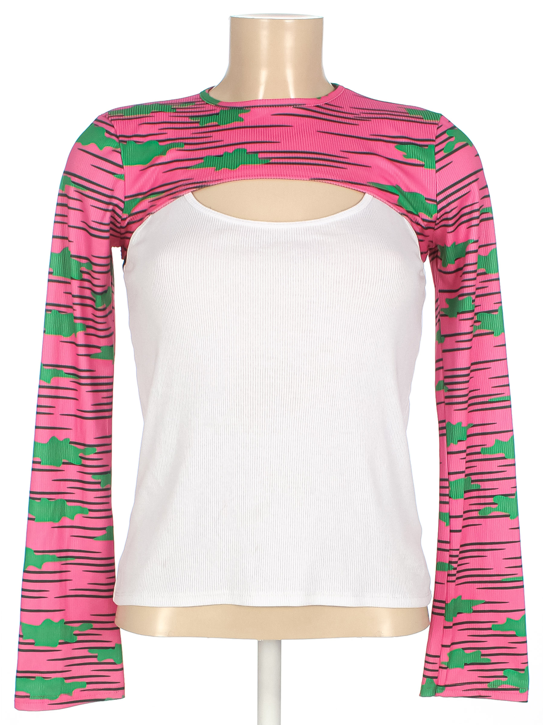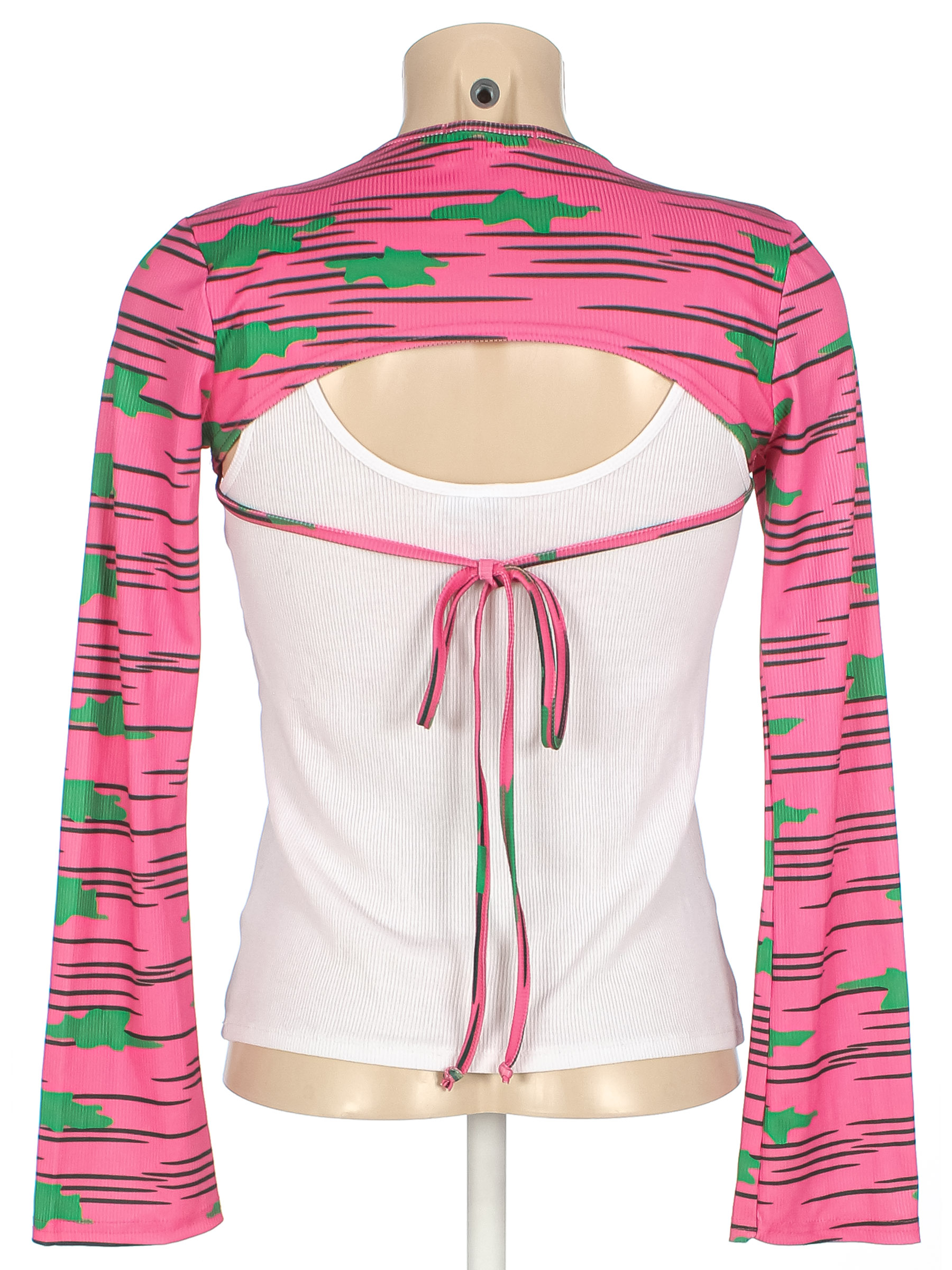 Маркировка на изделии отсутствует. Размер указан на основании замеров (40-42). Майка не в комплекте. Без видимых следов носки.