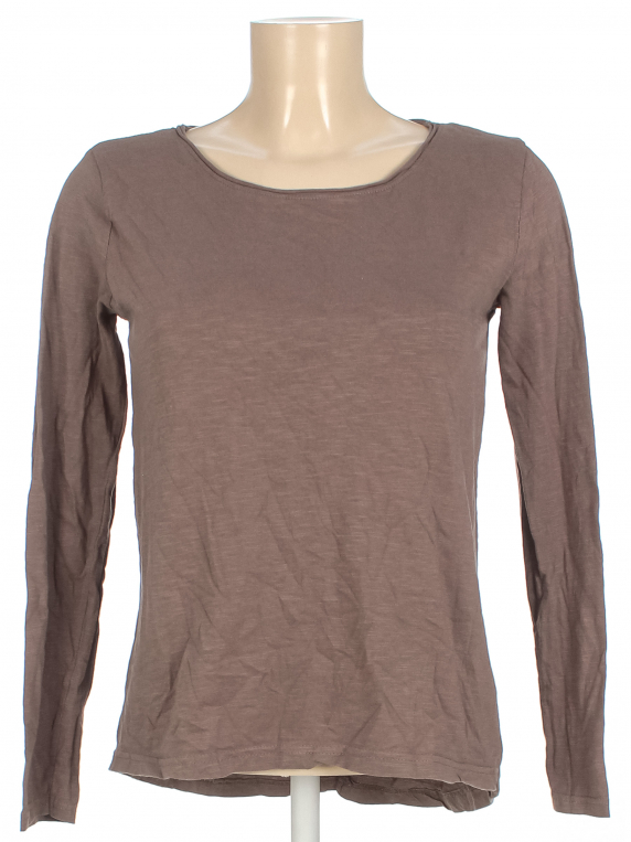 Есть мелкие катышки, ткань потускнела, местами вытянулась.