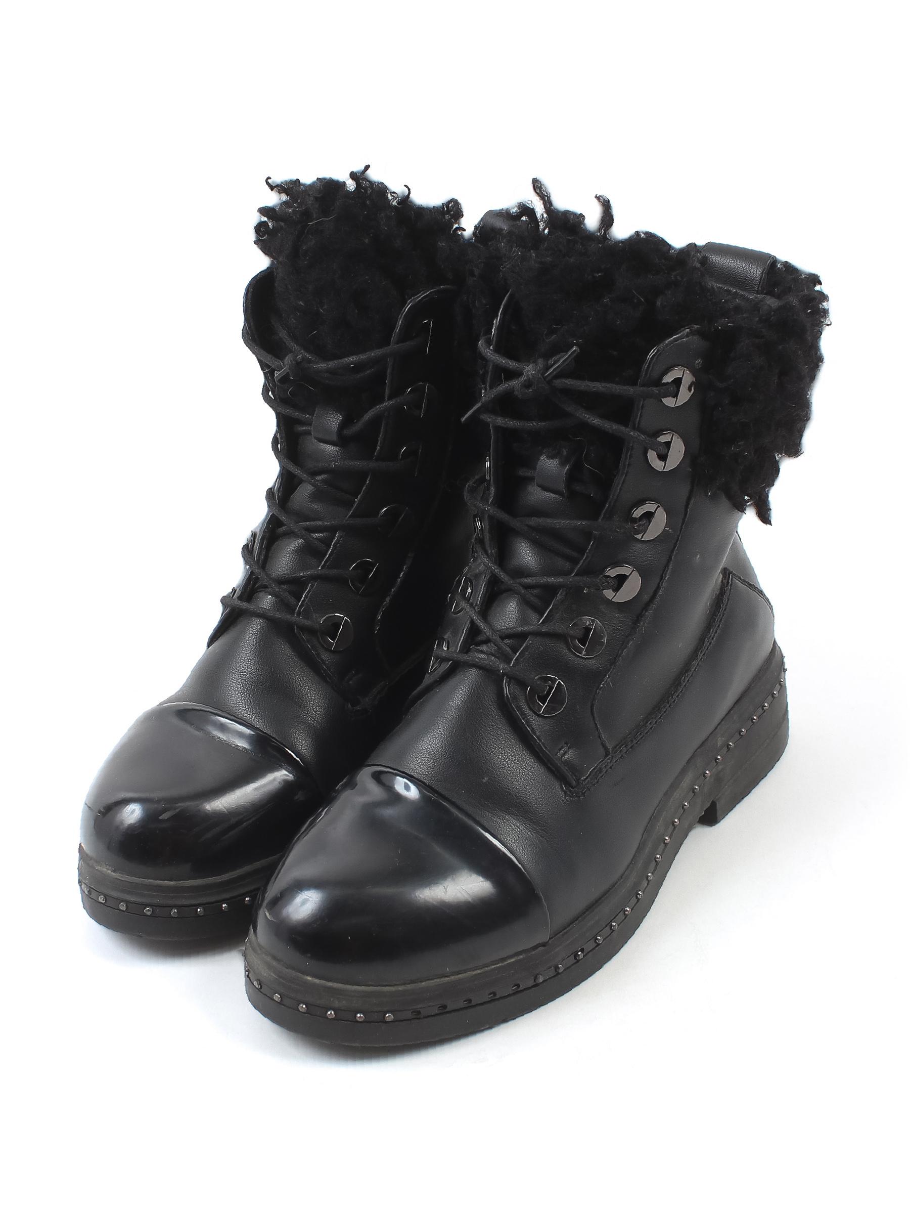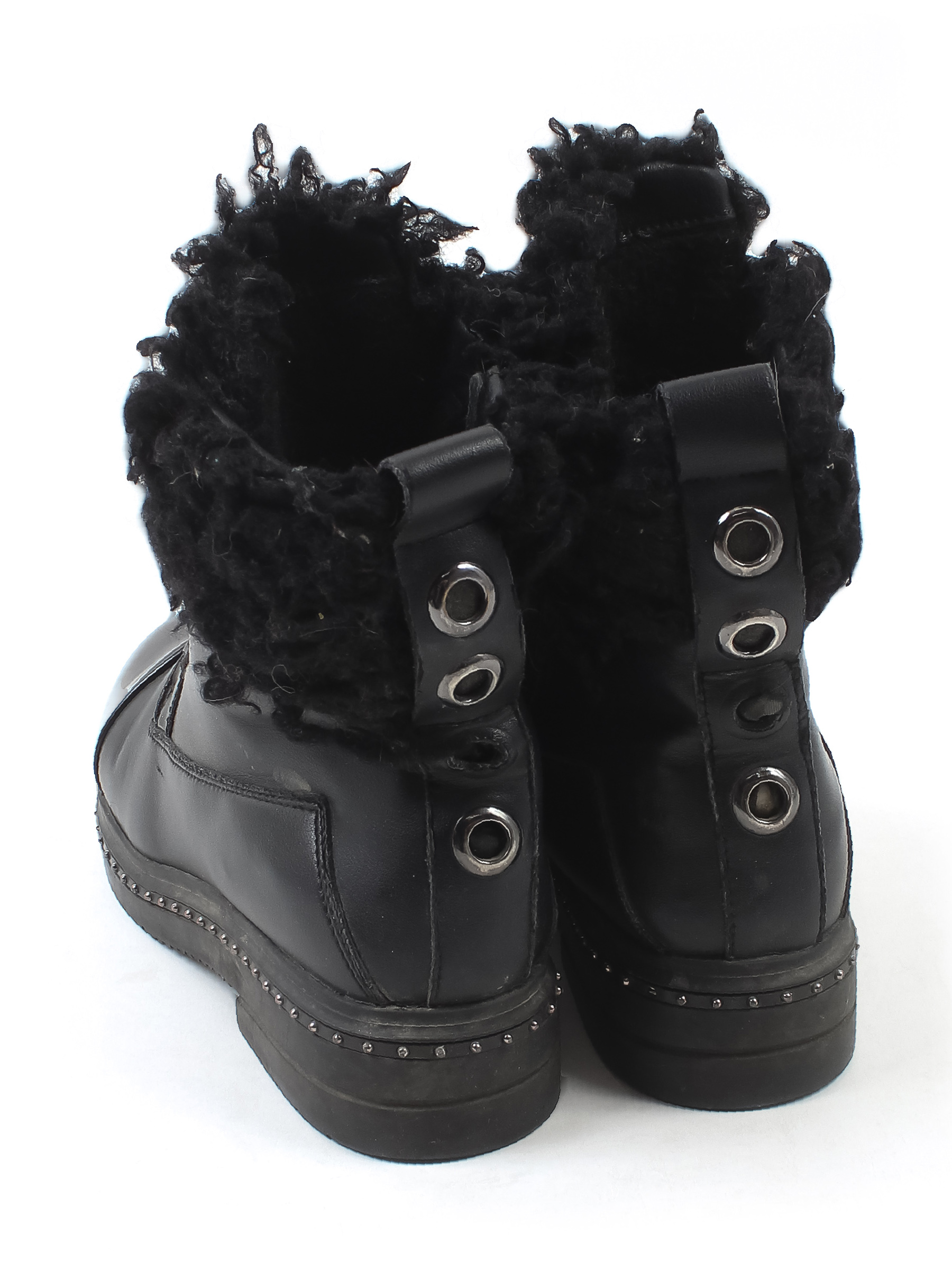 Есть царапины и заломы. Стразы частично отсутствуют. Мех скатался.