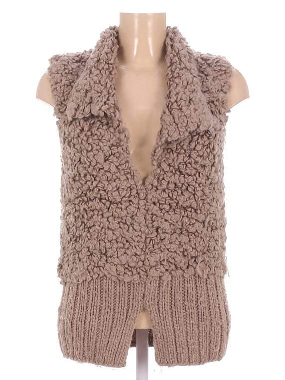 Есть катышки, скатался ворс, спереди зашито вручную. Серо-коричневый.