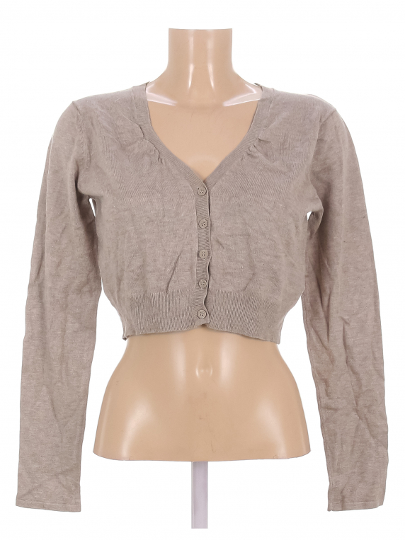 Серо-бежевый. Есть катышки, ткань незначительно вытянулась по швам.