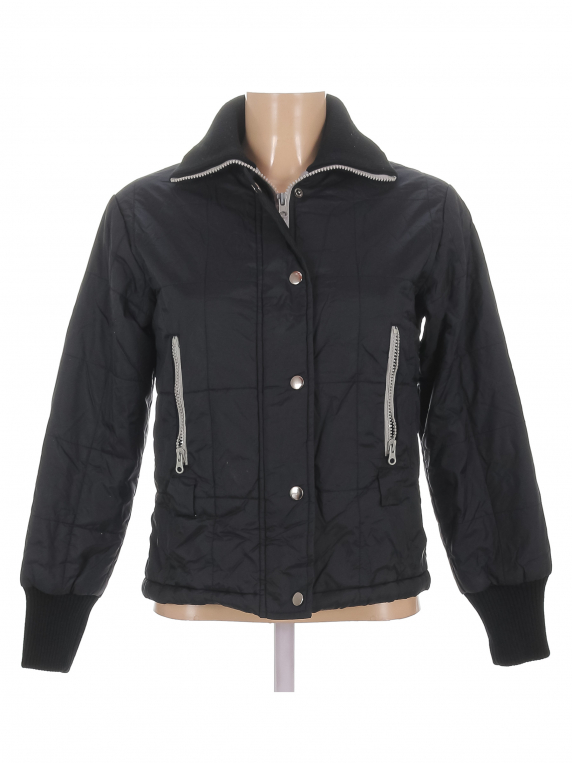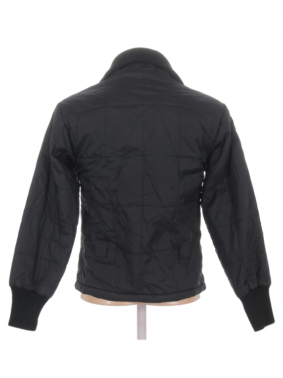 Есть катышки, небольшие поверхностные загрязнения, ткань местами лоснится. Нет капюшона.