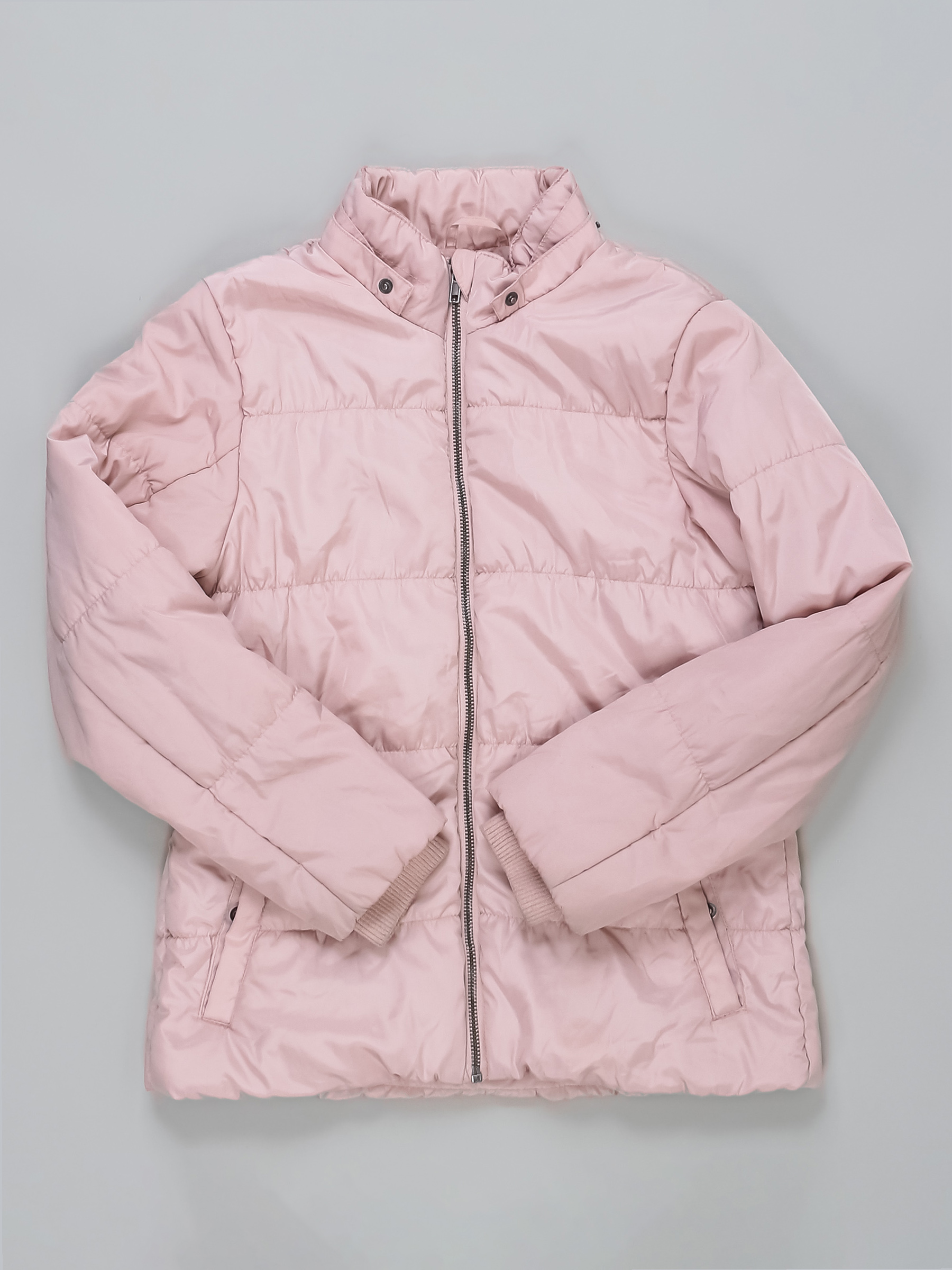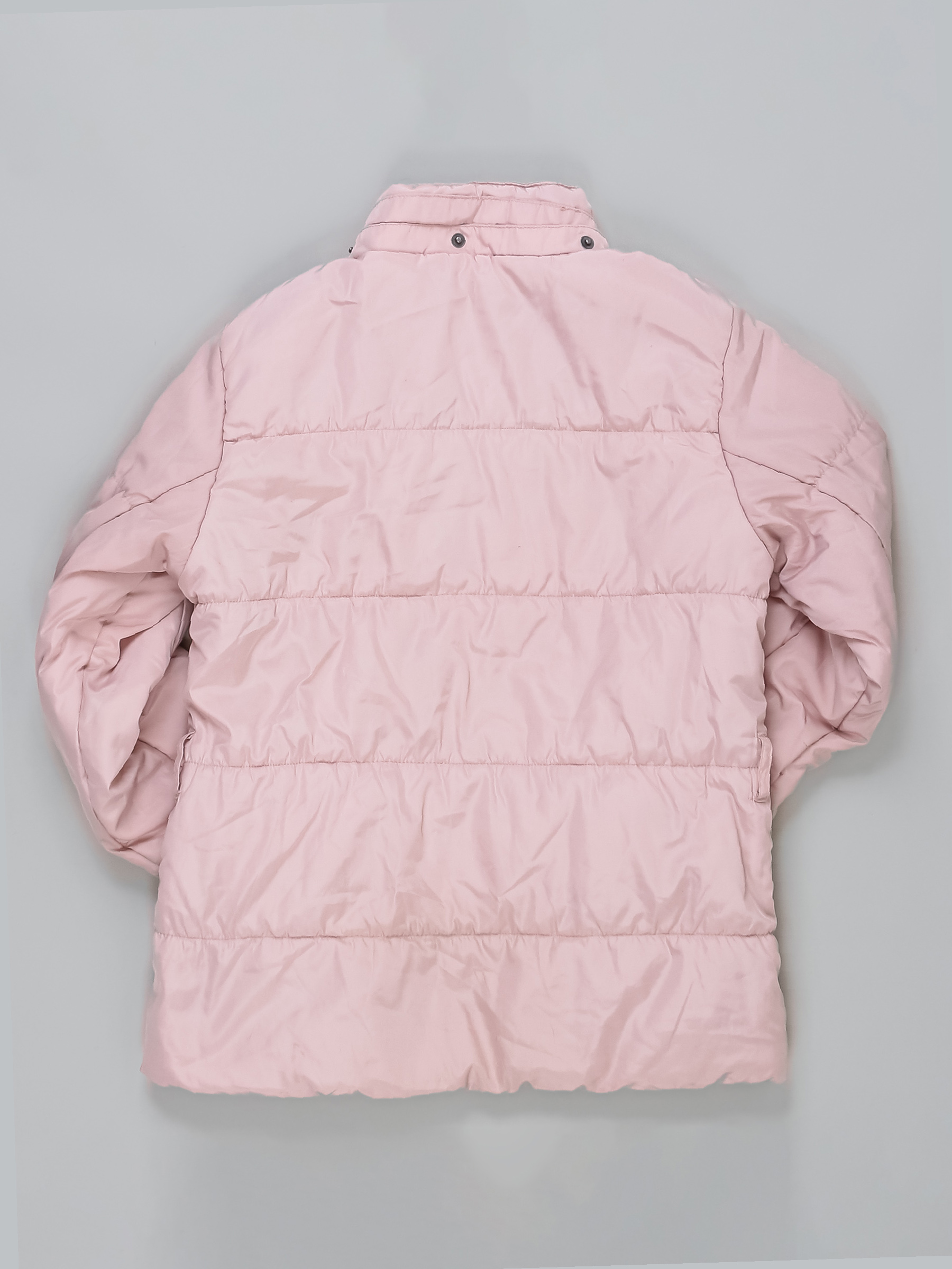 Нет капюшона. Местами сбился наполнитель. Загрязнения местами, на манжетах катышки, нет пояса.
