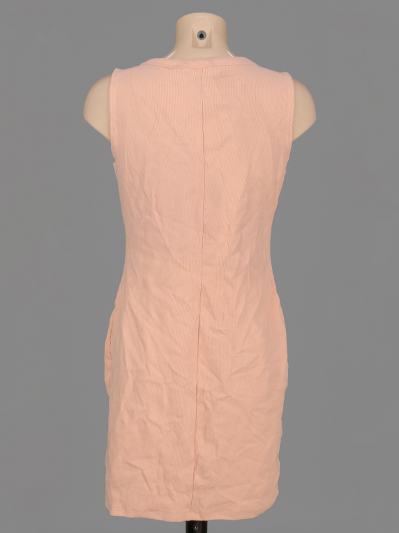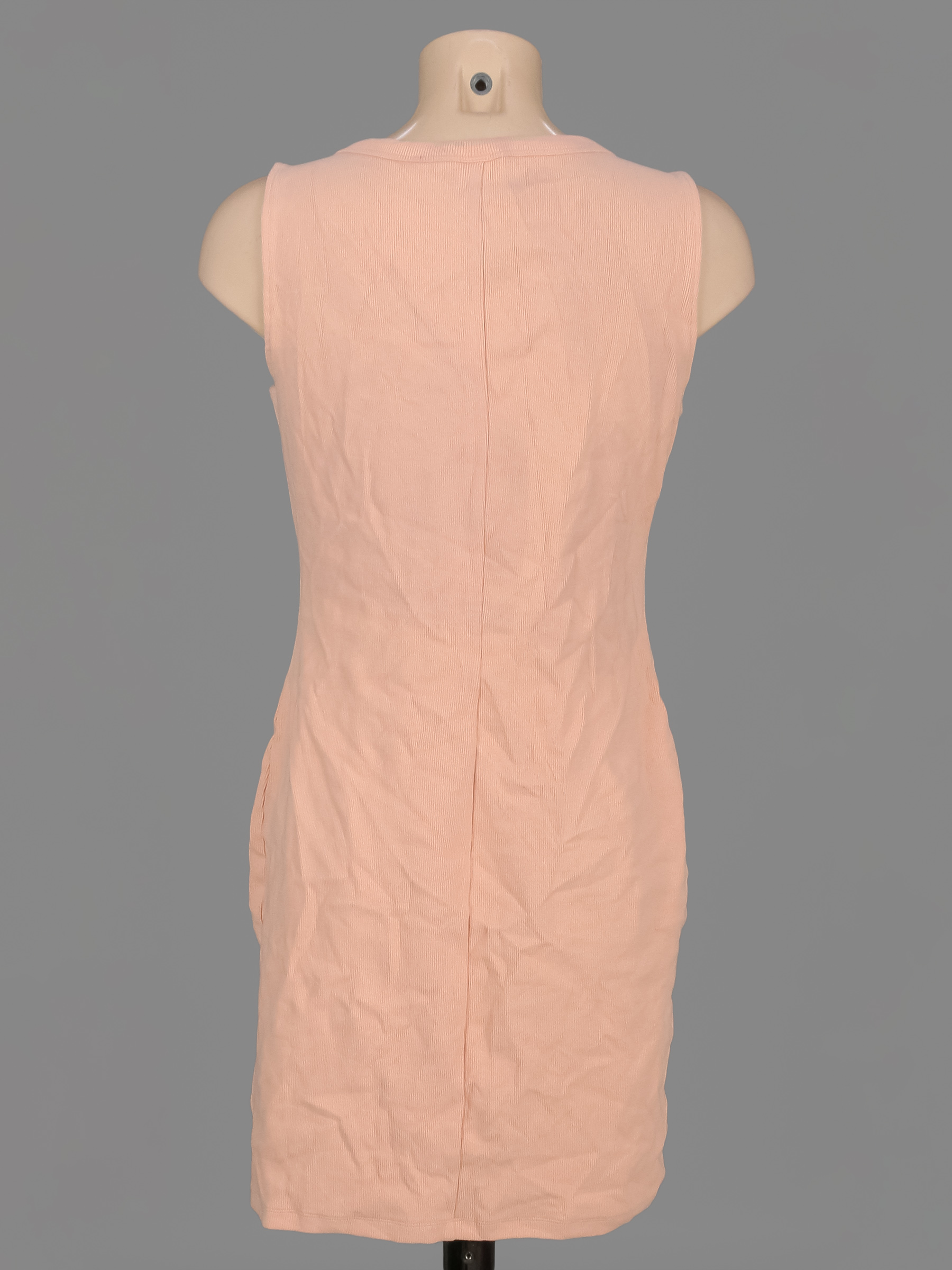Персиковый оттенок. Есть мелкие катышки, пятнышки, ткань незначительно вытянулась по швам.