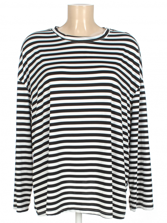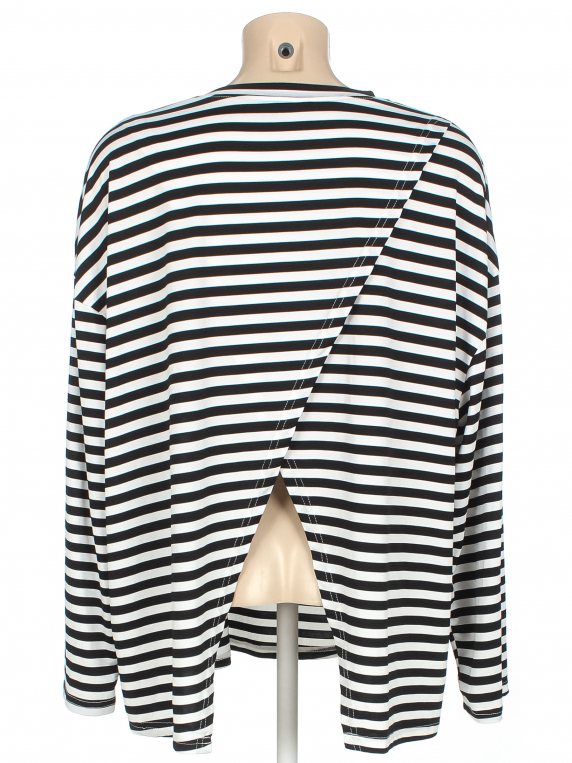 Черно-белый. Замер рукава указан от горловины. Свободный крой. Без видимых следов носки.