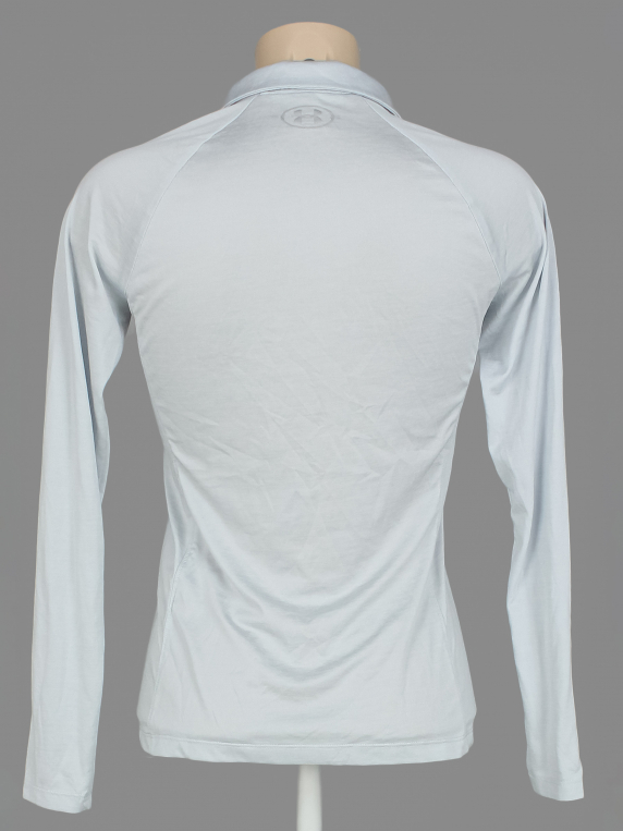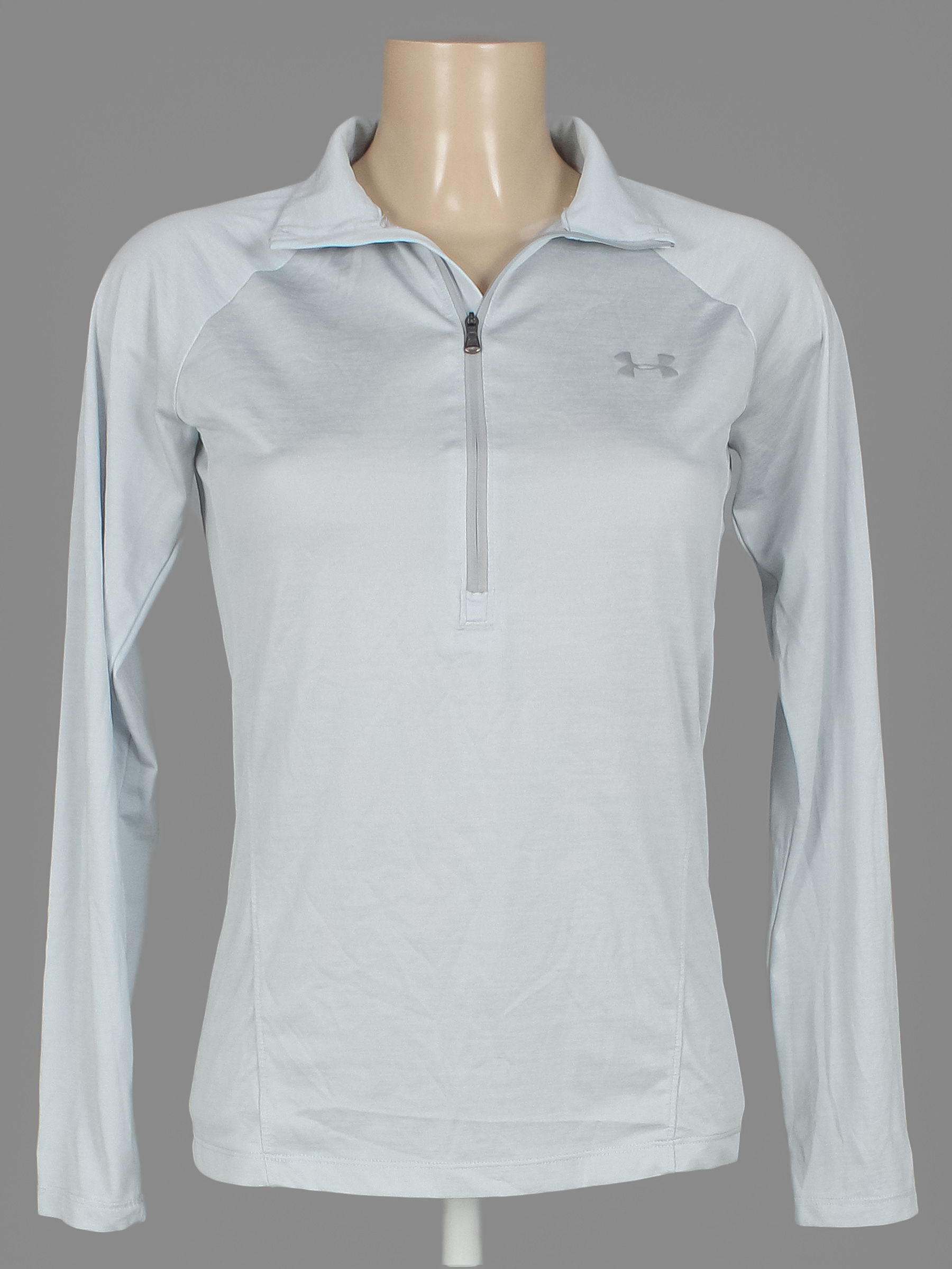 Серо-синий. Замер рукава указан от горловины. Немного потускнел цвет ткани.