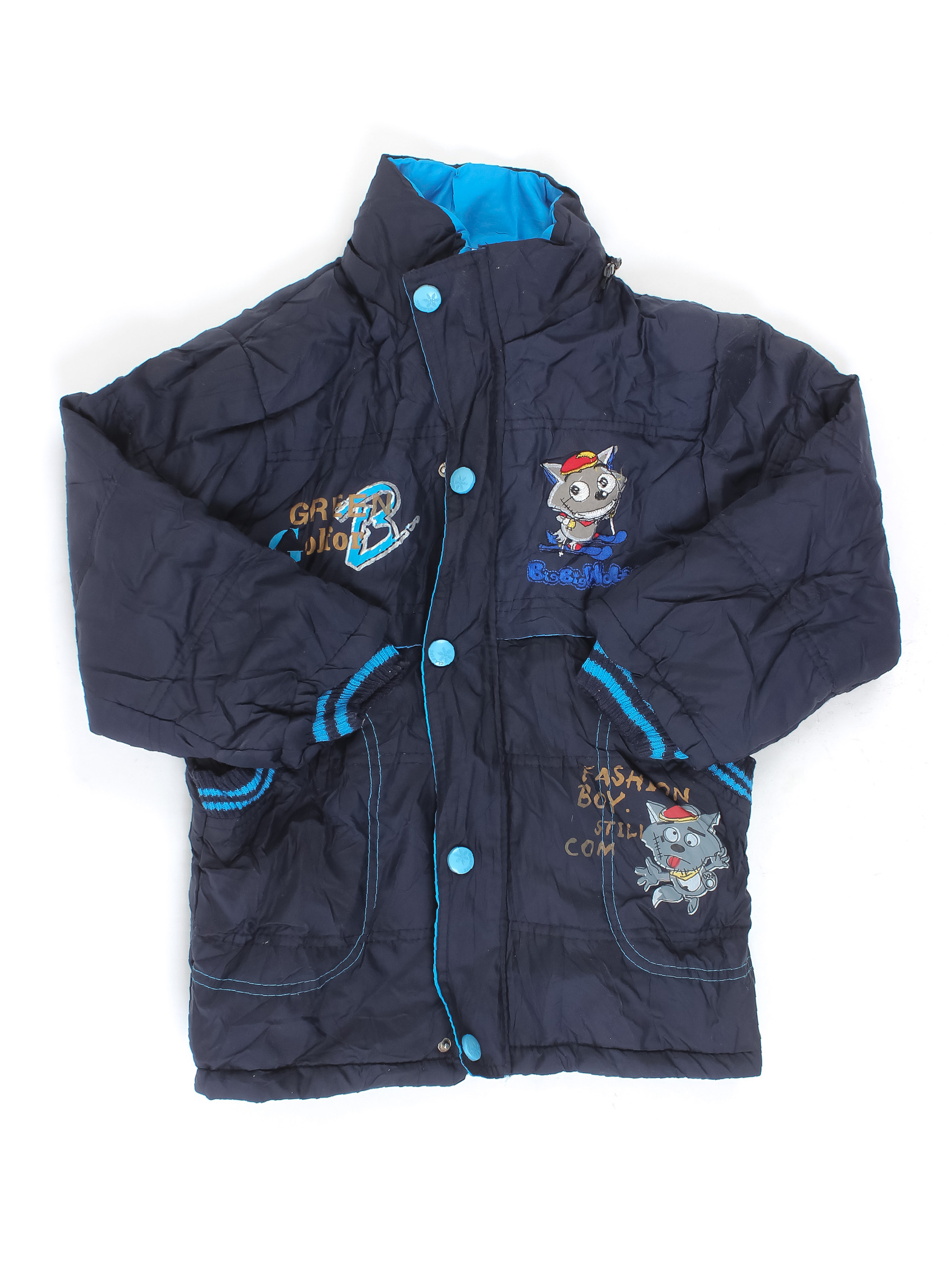 Маркировка на изделии отсутствует. Возраст указан на основании замеров. Есть мелкие катышки на манжетах. Есть немного затяжек.