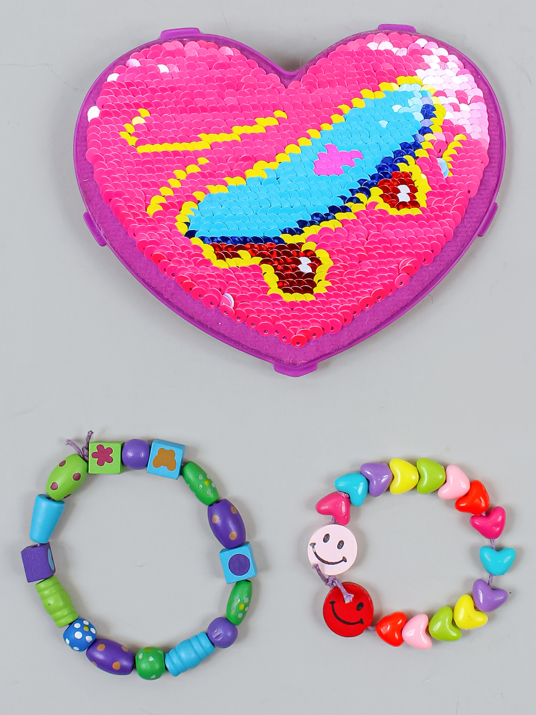 Минимальный износ. Комплект: декор-сердце и 2 браслета. Указаны размеры декора.