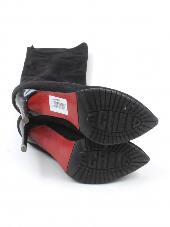 Набойки деформированы. Есть потертости материала и царапины на каблуке.