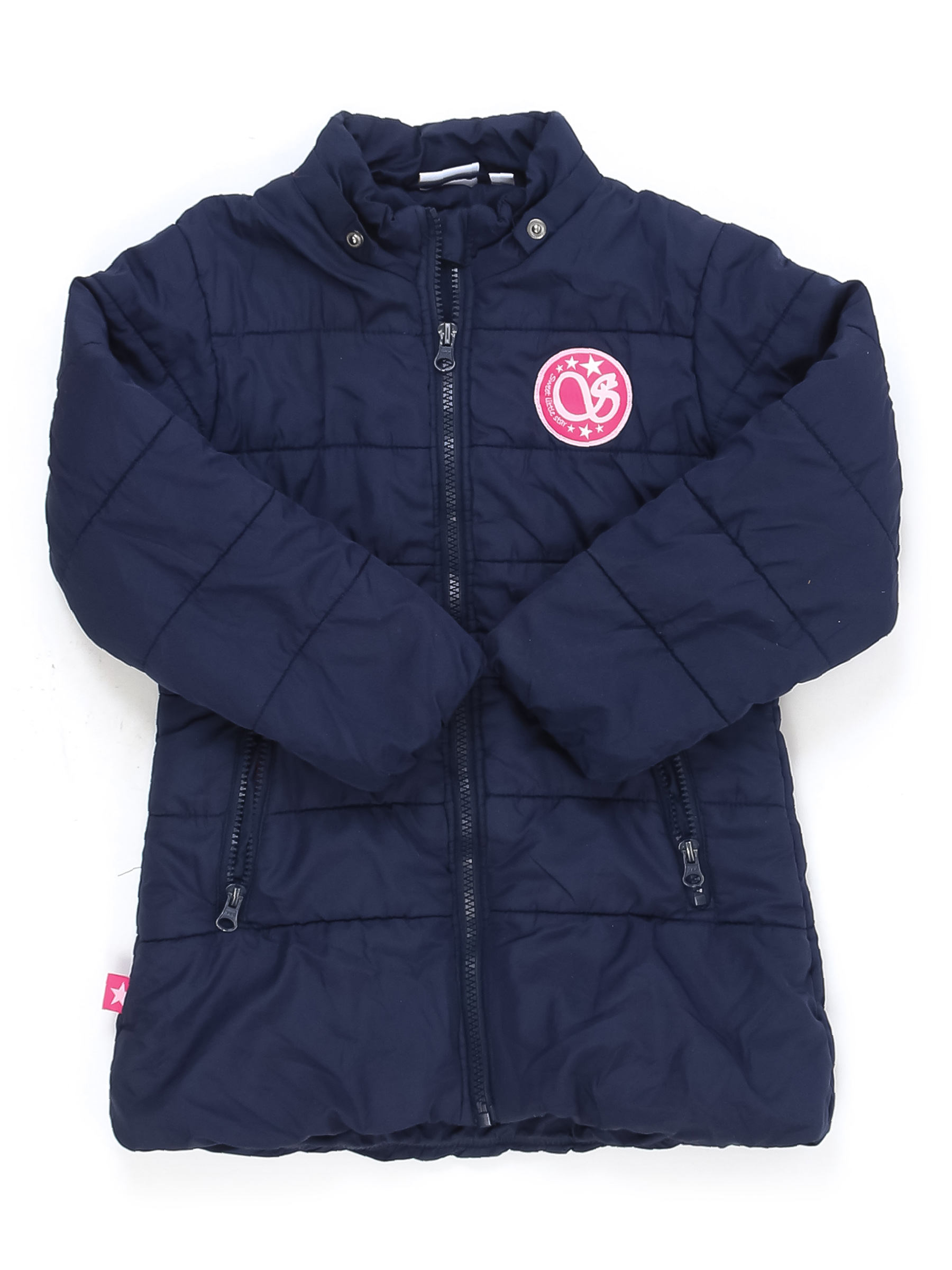 Есть небольшие загрязнения, местами немного сбился наполнитель, стирается краска на бегунках. Нет капюшона, немного потускнел цвет ткани.