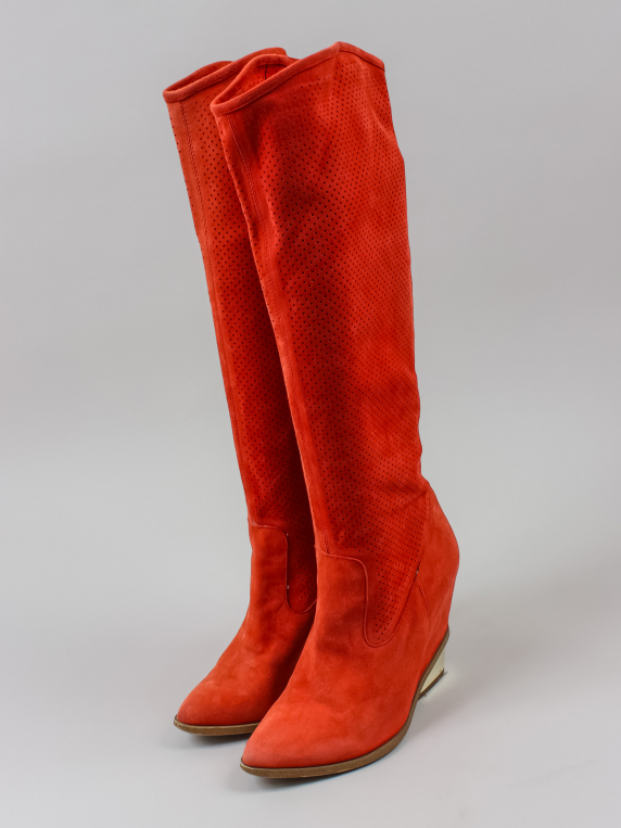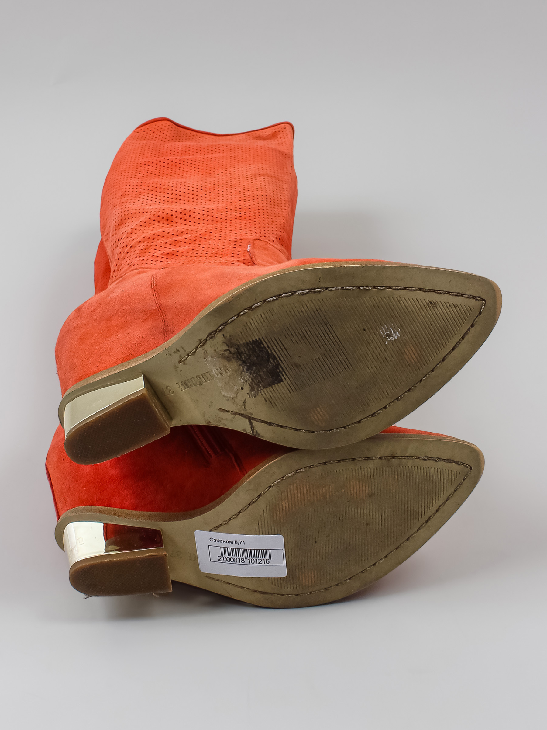 Есть небольшой износ подошвы. Голенище перфорированное. На тёплую погоду.