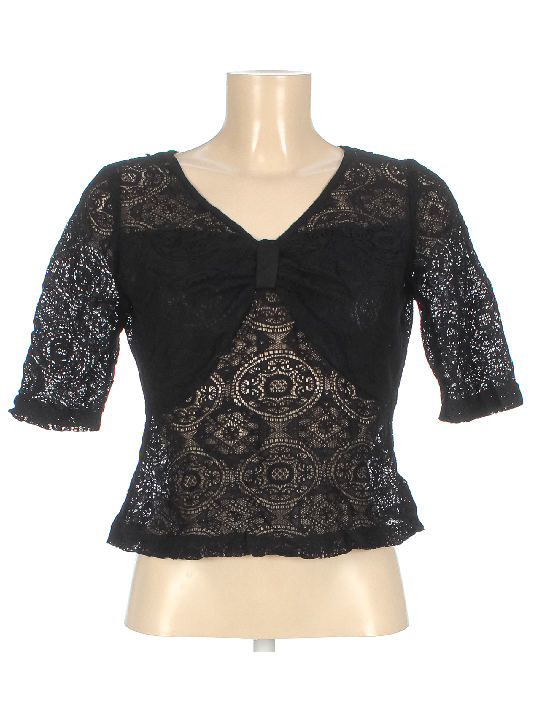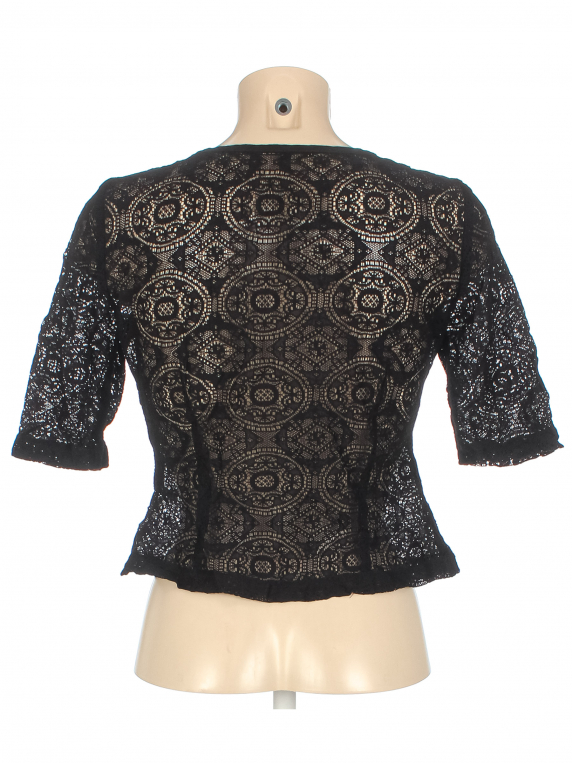 Маркировка на изделии отсутствует. Размер указан на основании замеров. Есть затяжка на плече.
