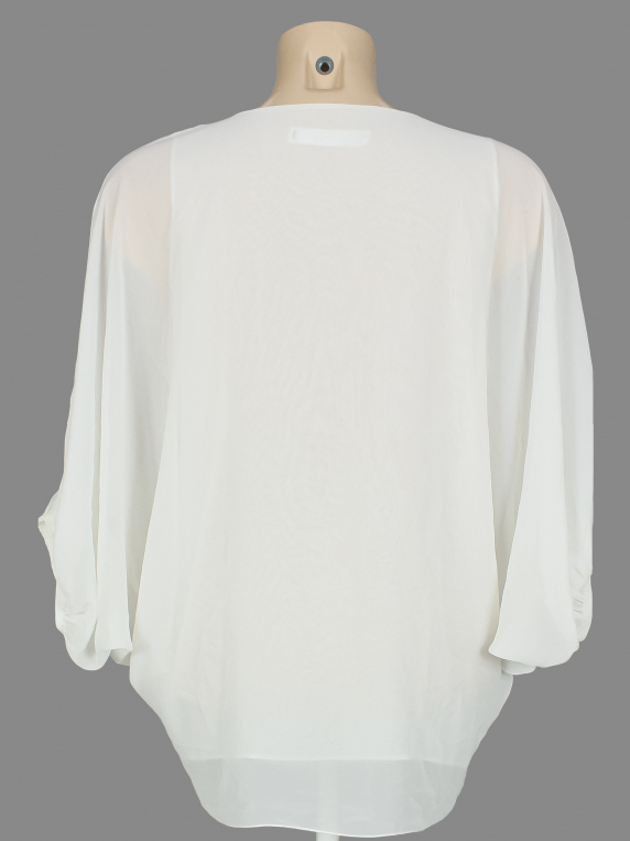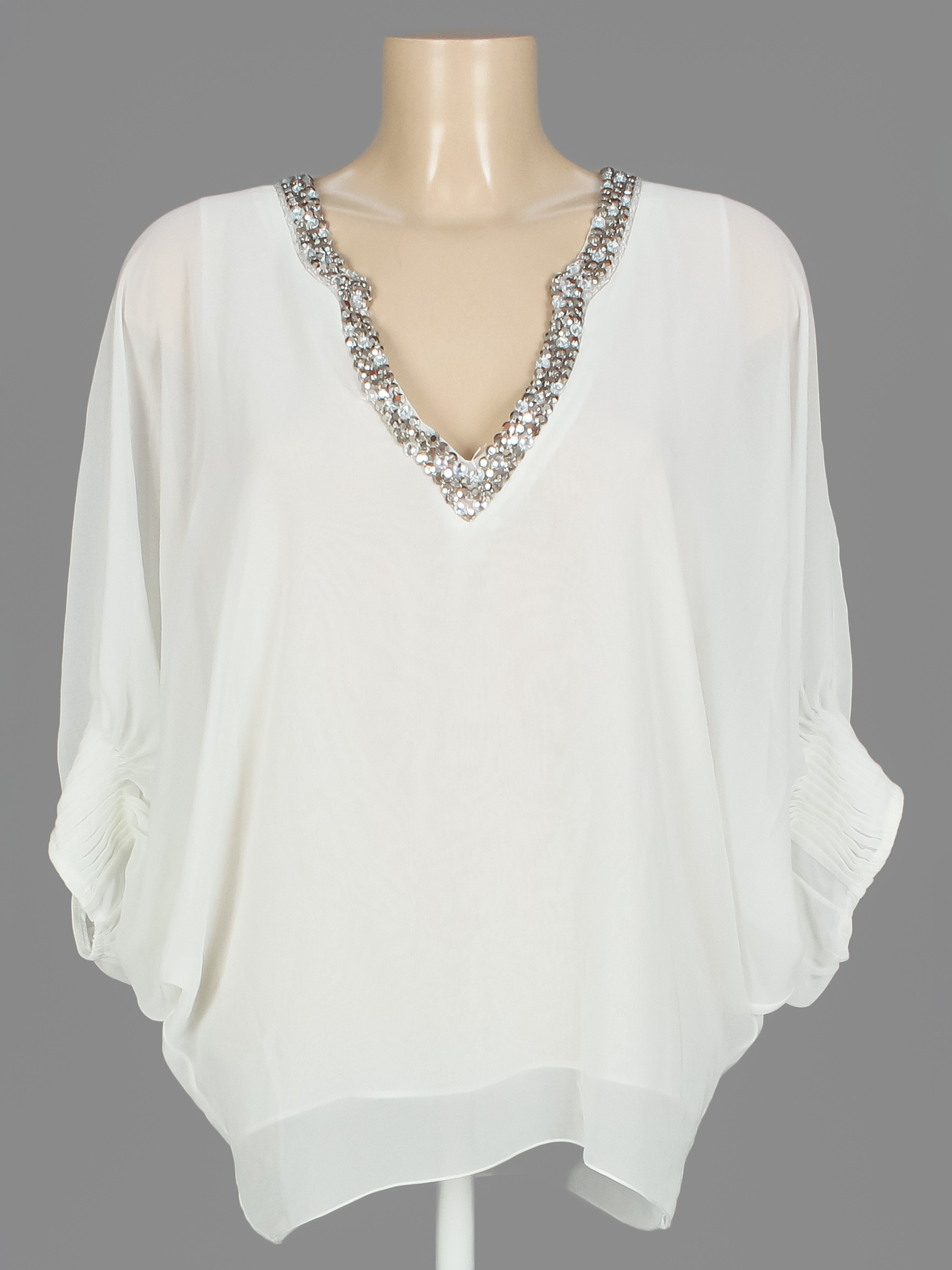 Маркировка на изделии отсутствует. Размер указан на основании замеров (46-48). Обхват груди указан по внутренней майке. Замер рукава указан от горловины. Есть пятнышки, в области подмышек немного пожелтел материал.