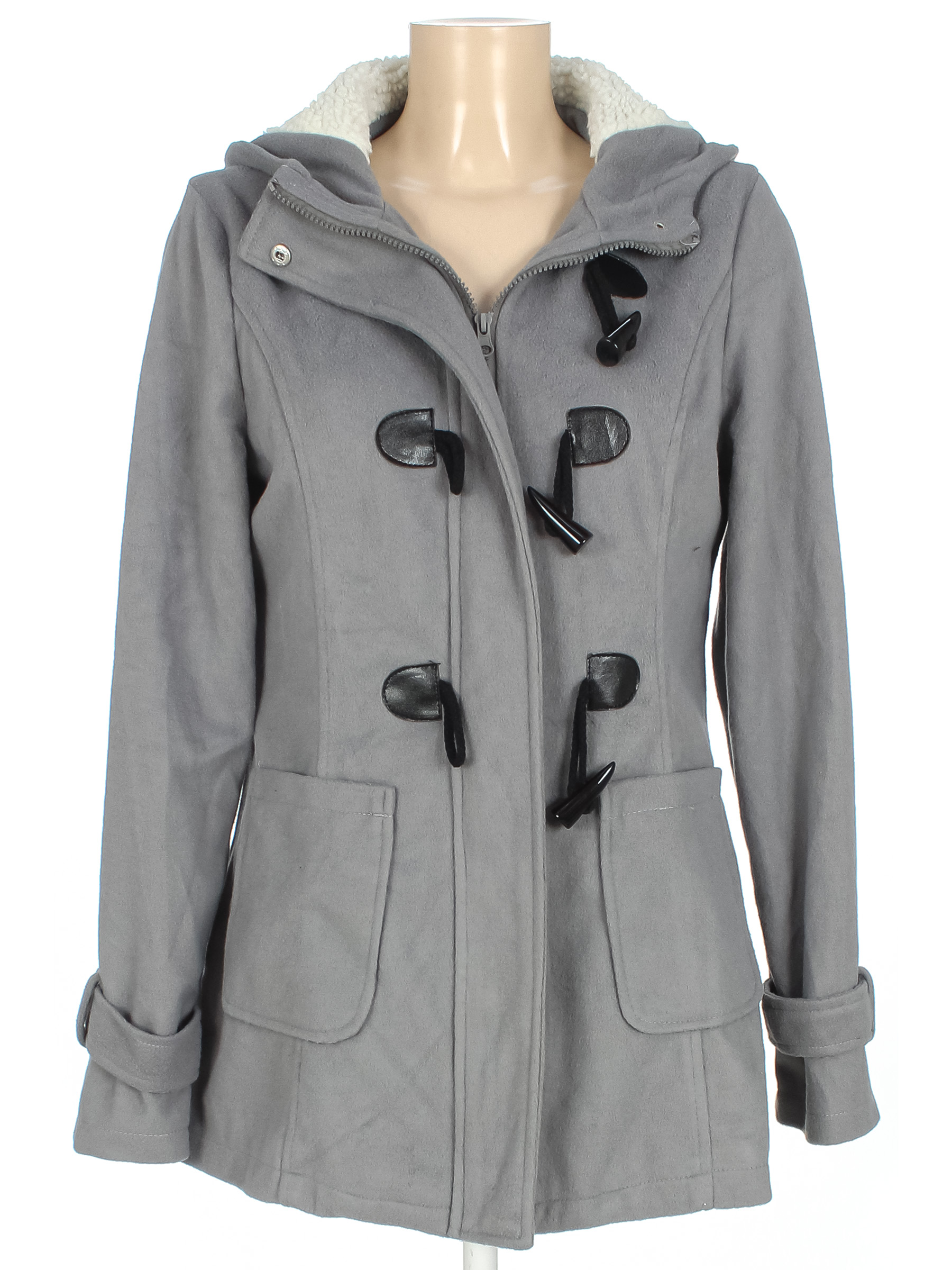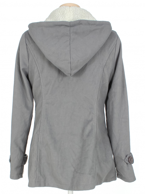 Маркировка на изделии отсутствует. Размер указан на основании замеров (42-44). Тонкое. Немного скатался ворс, треснуло покрытие на черной вставке.