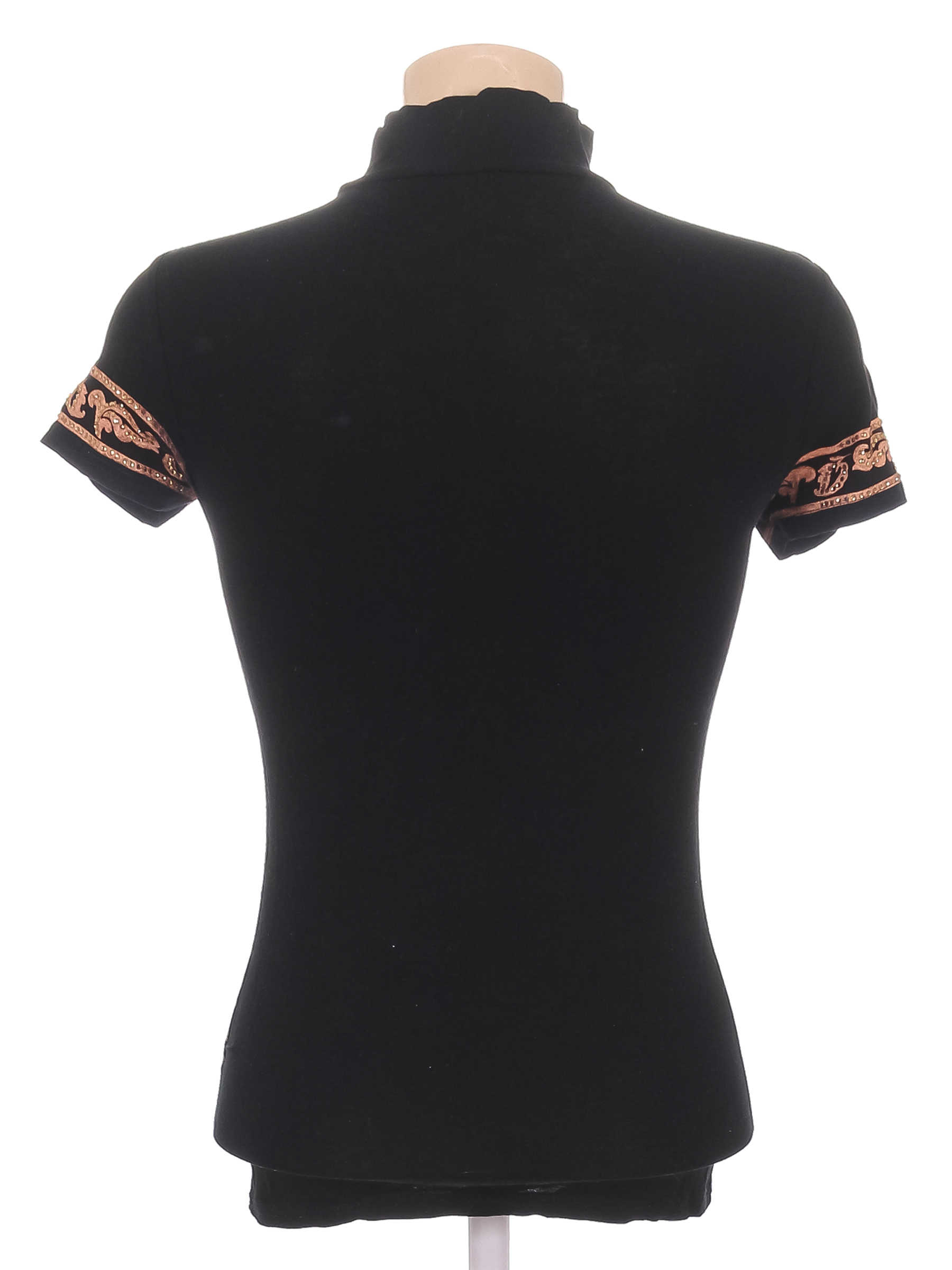 Маркировка на изделии отсутствует. Размер указан на основании замеров (40-42). Есть катышки в области подмышек, отклеиваются стразы.
