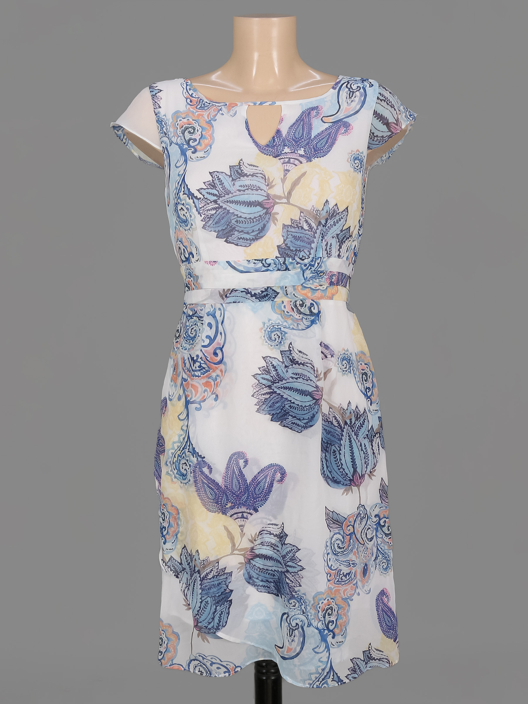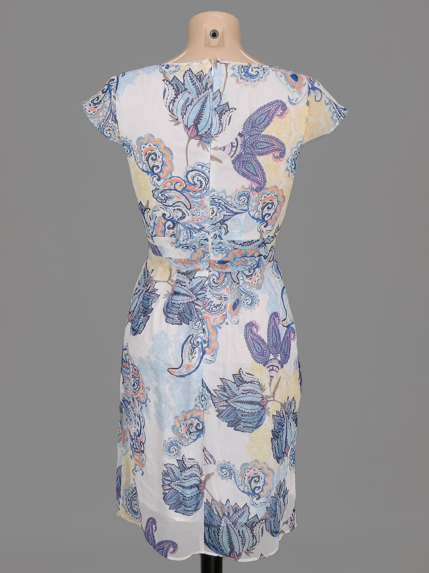 Маркировка на изделии 34. Размер указан на основании замеров. На подкладе на спине есть мелкое незначительное пятнышко.