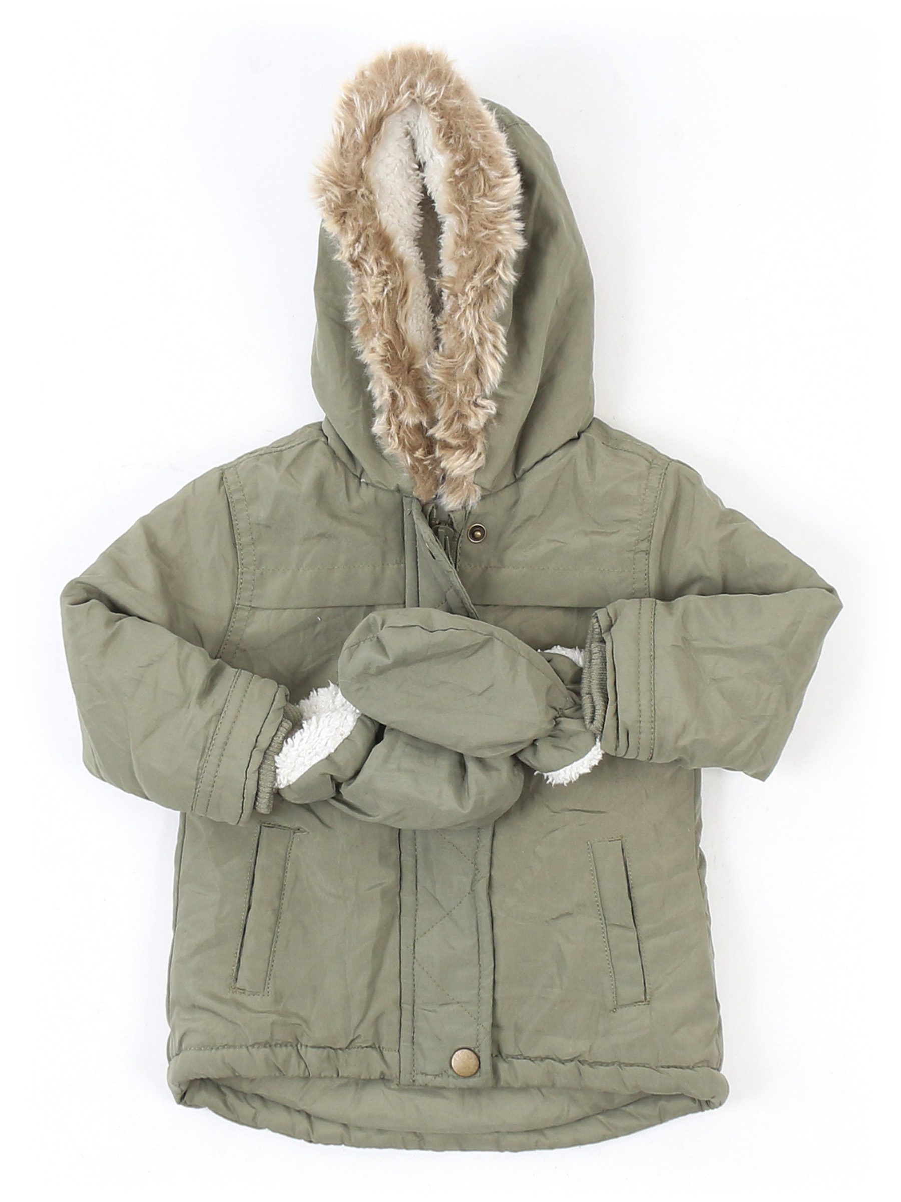 Слежался/скатался мех, есть пятнышко на варежке, немного катышек на манжетах.
