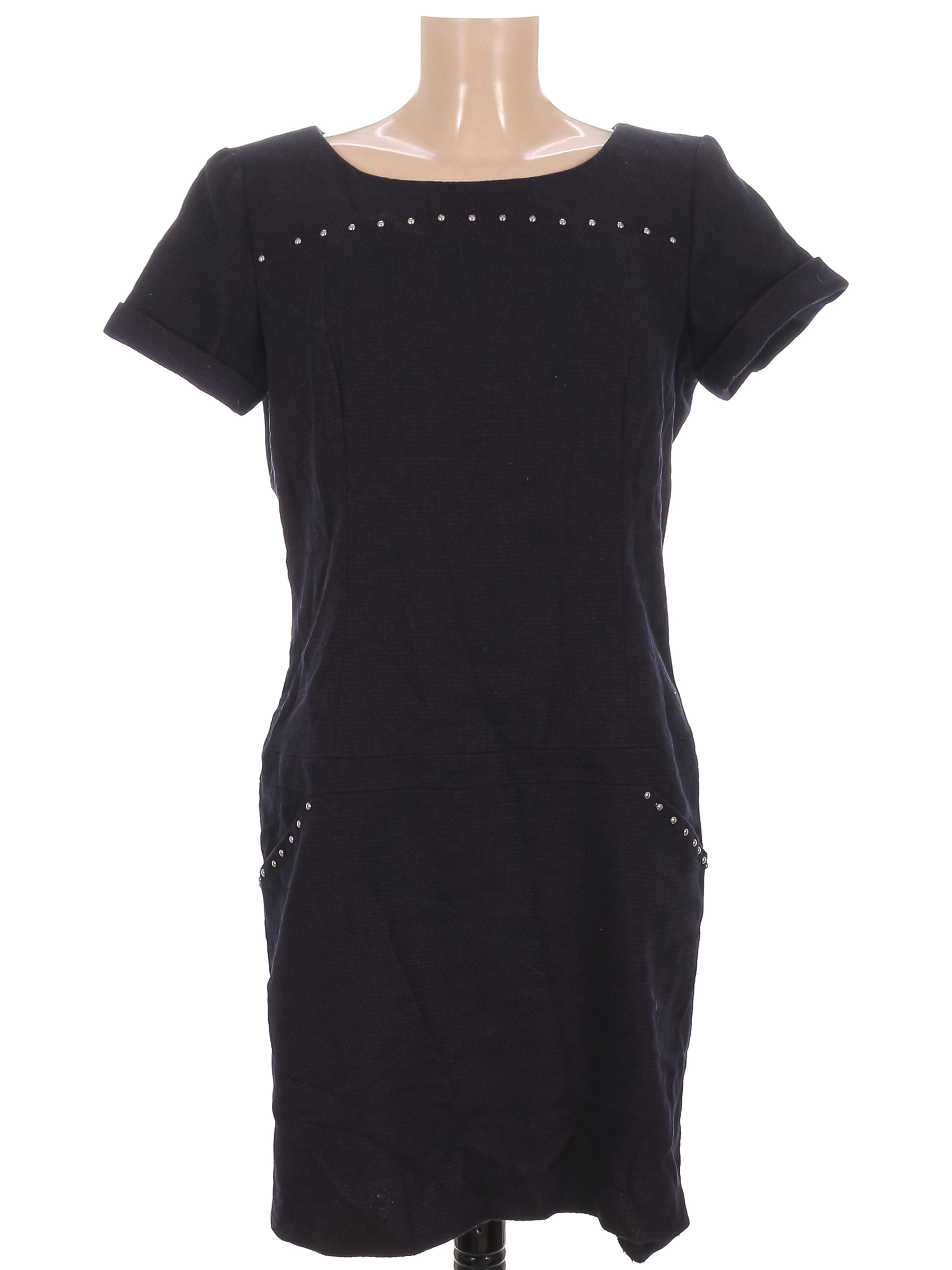 Маркировка на изделии 42. Размер указан на основании замеров. Есть немного катышек, в области подмышки на подкладе есть дырочка.