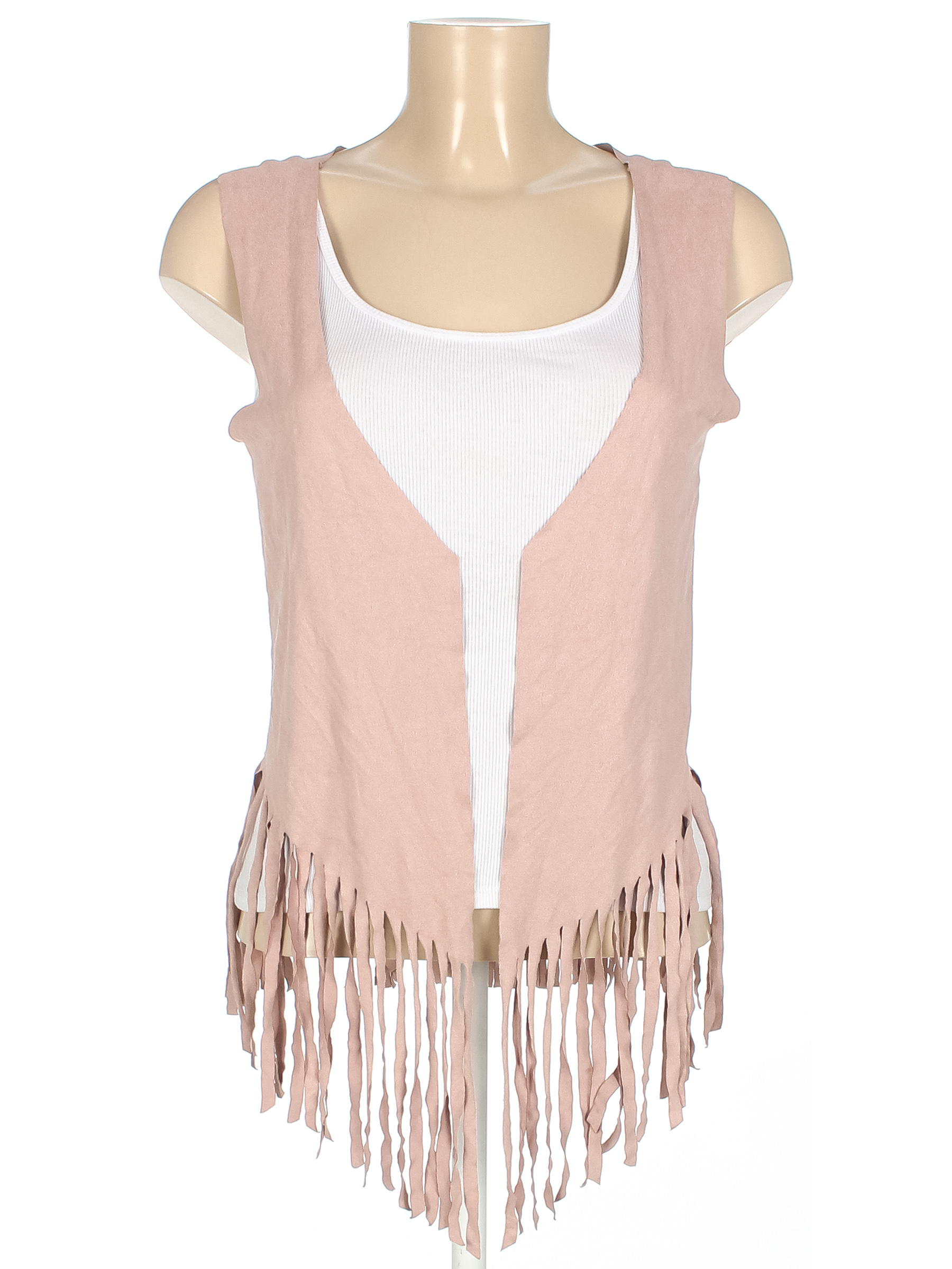 Маркировка на изделии отсутствует. Размер указан на основании замеров. Майка в комплект не входит. Есть потертости.