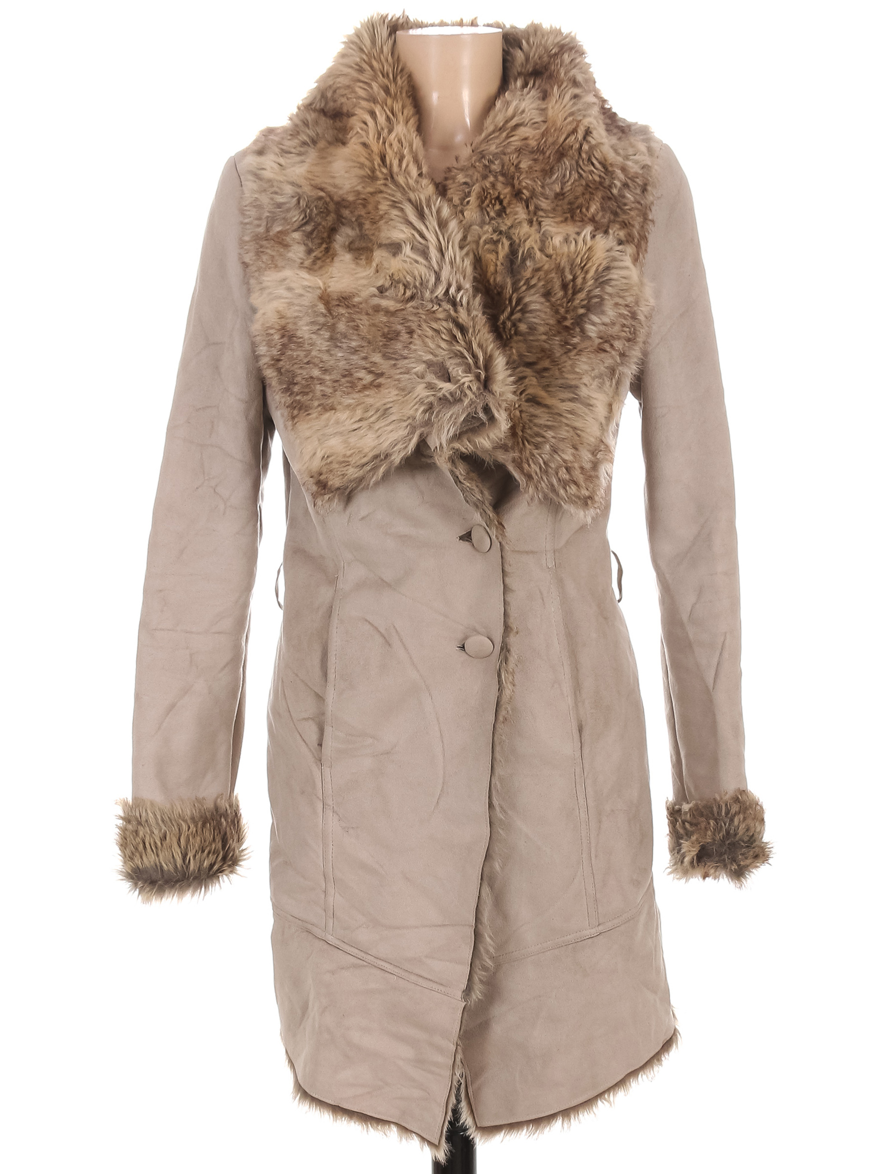 Маркировка на изделии отсутствует. Размер указан на основании замеров. Есть катышки. Мех местами скатался.