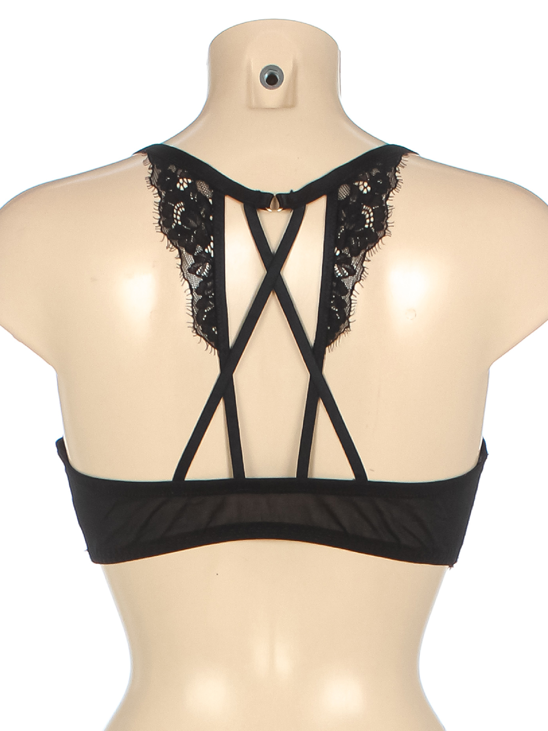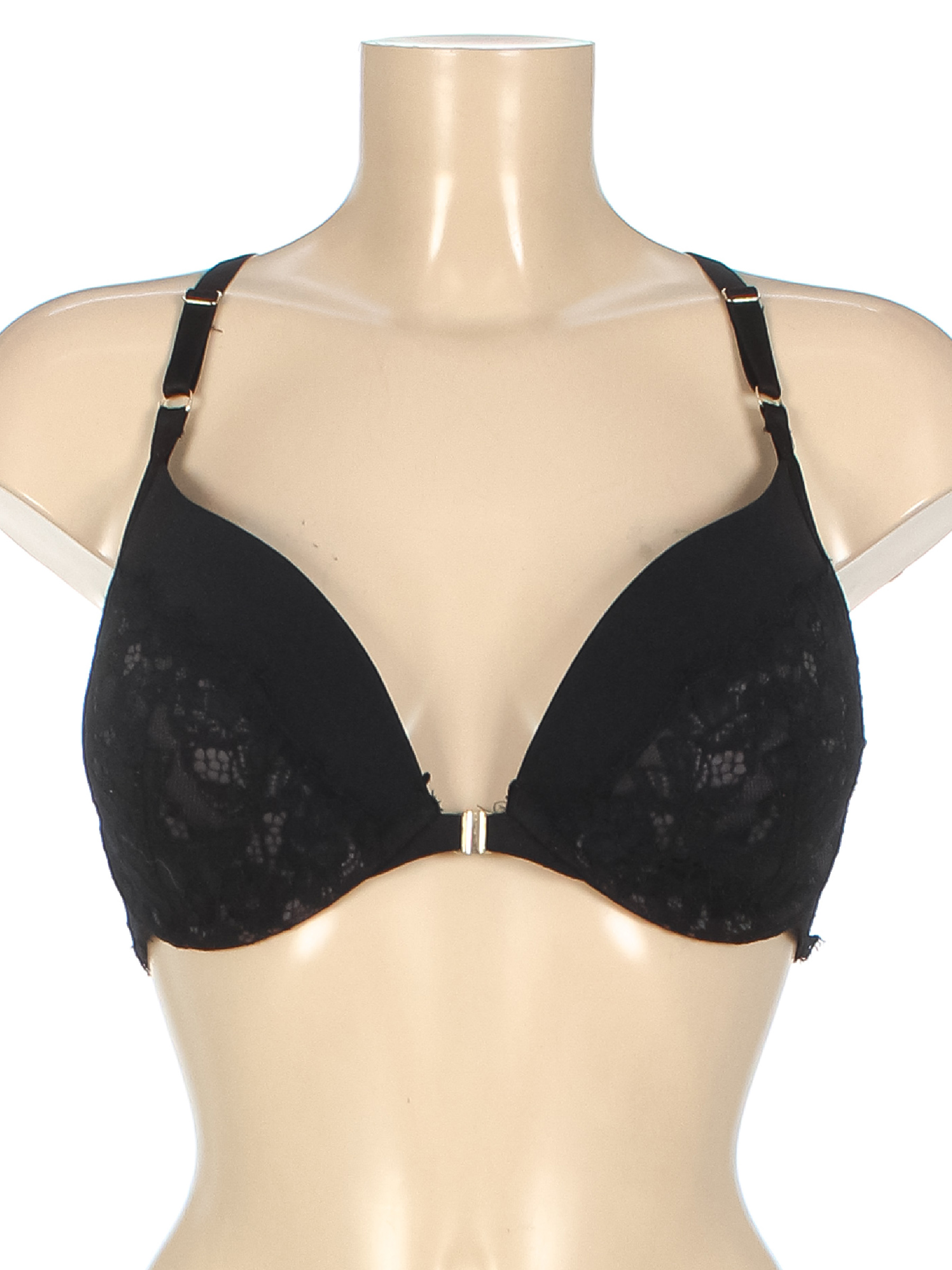 Маркировка на изделии отсутствует. Размер указан предположительно. есть пуш-ап. Есть заломы на чашках, несколько мелких катышек.