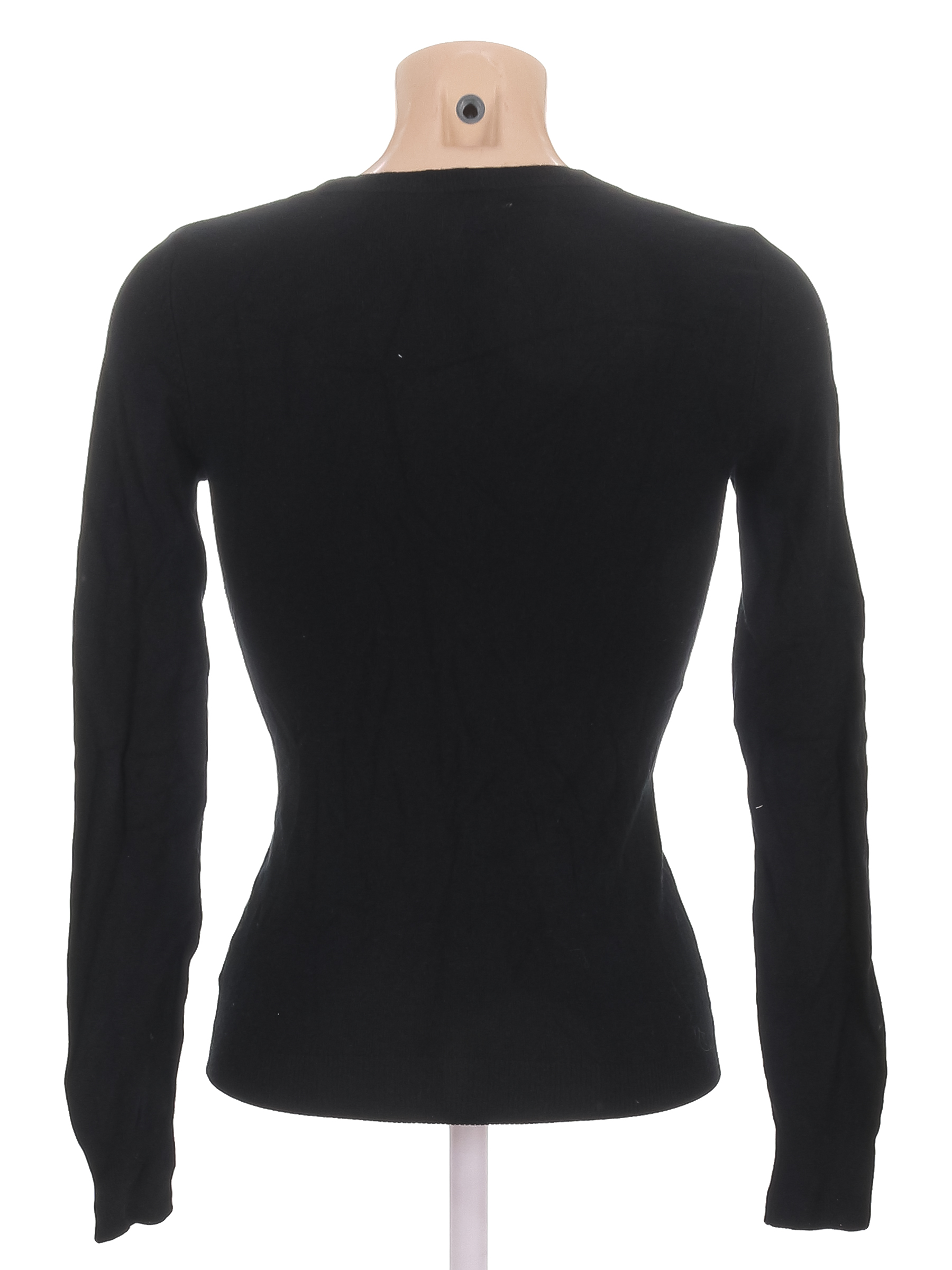 Есть пятнышко на рукаве, в области подмышек есть загрязнения, немного катышек, ткань незначительно вытянулась по швам.