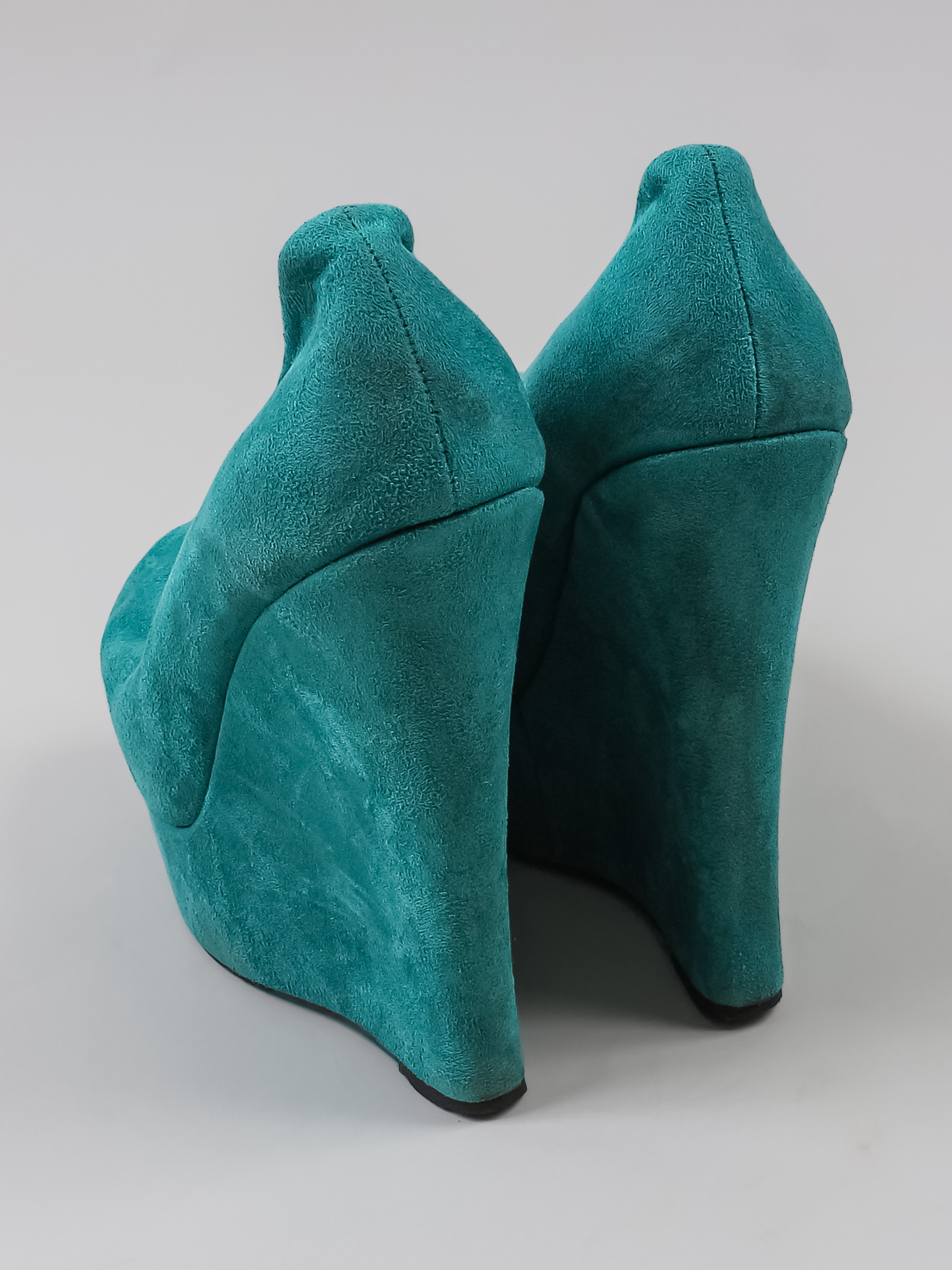 Есть небольшой износ подошвы. Немного расклеивается шов на одной танкетке. Небольшие загрязнения изнутри.