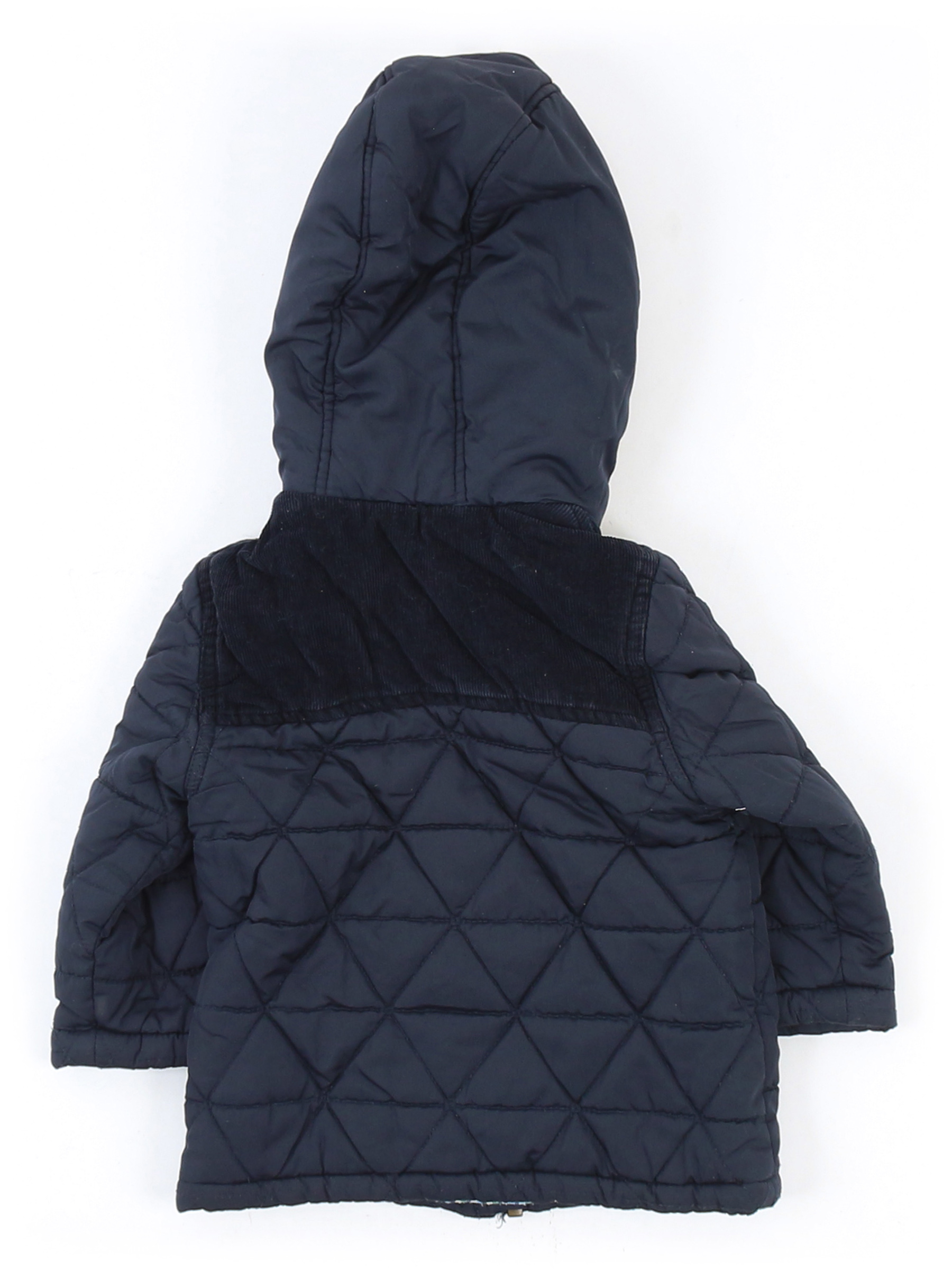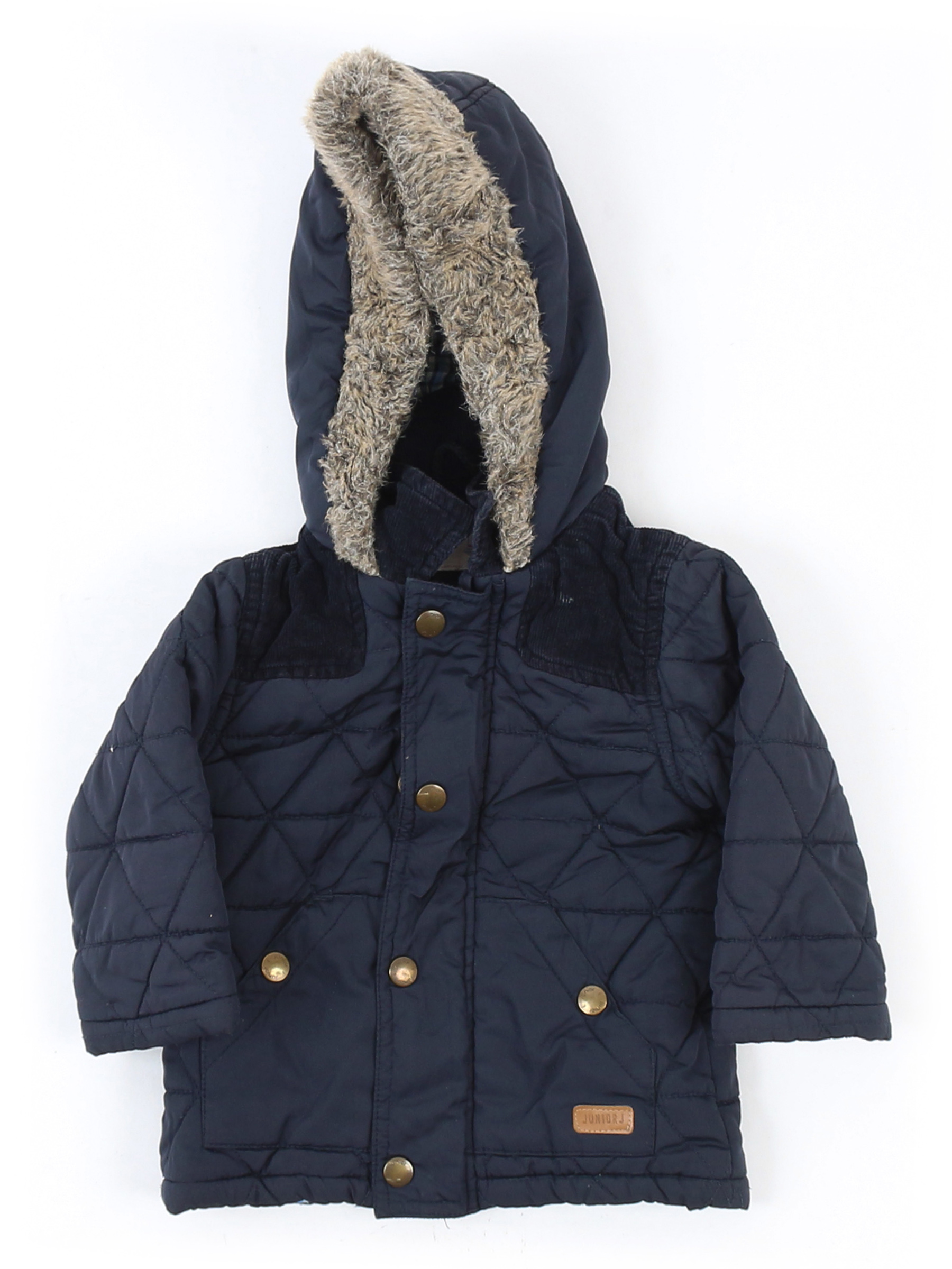 Есть катышки, загрязнения, слежался мех на капюшоне. Ткань потускнела.