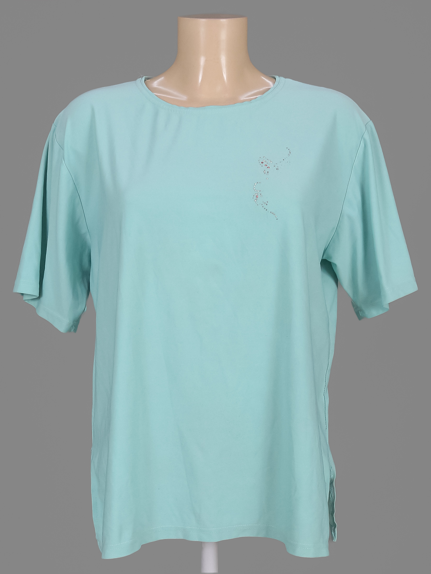 Есть катышки. Стразы частично отсутствуют. Распускаются строчки по бокам.