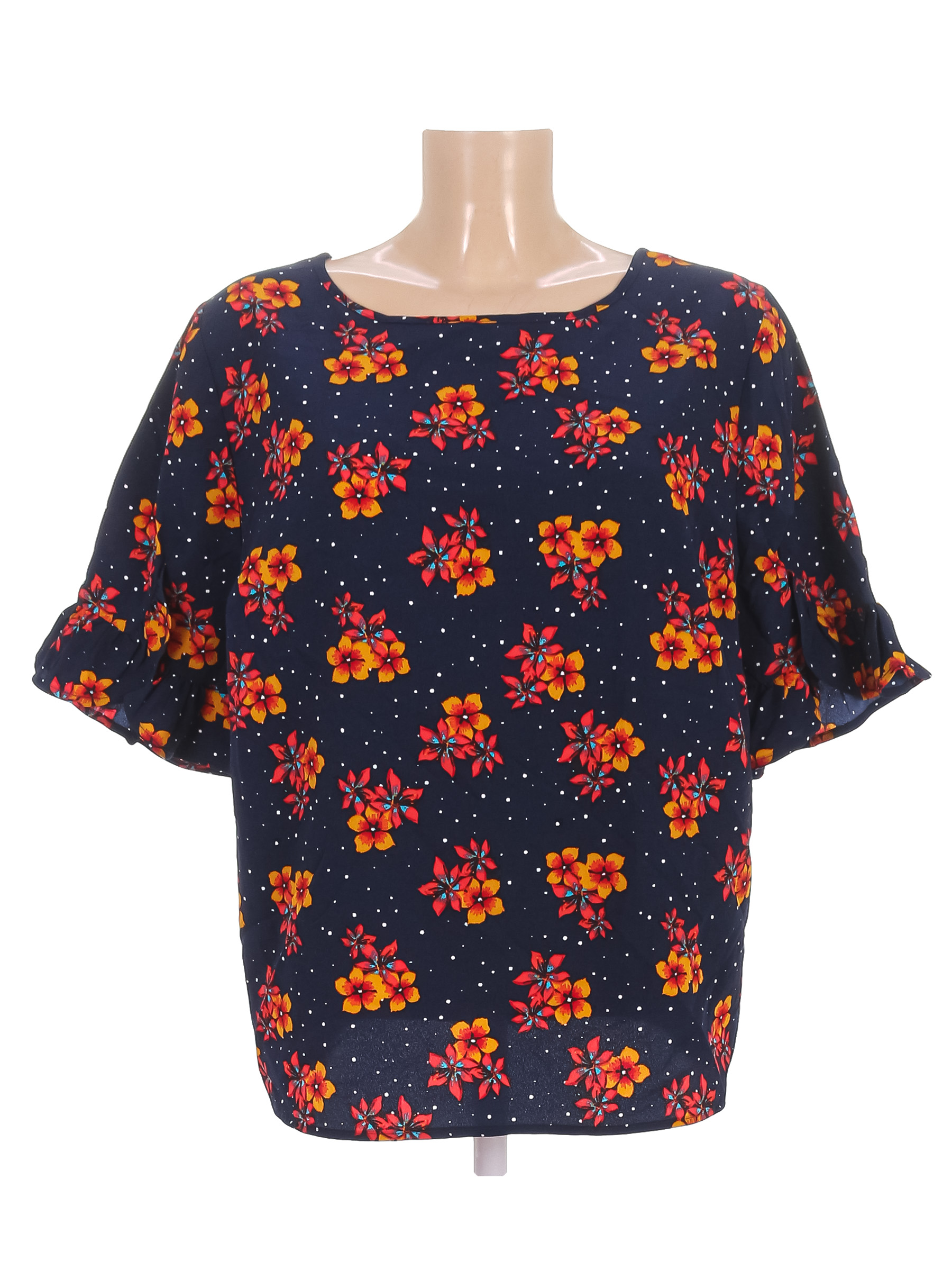 Маркировка на изделии отсутствует. Размер указан на основании замеров (46-48). В области подмышек есть небольшие загрязнения.