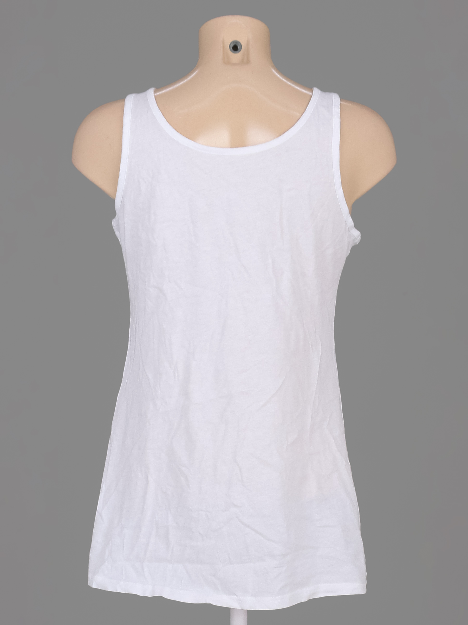 Маркировка EUR 44-46. Есть мелкие катышки, пятнышки, загрязнения в области подмышек, ткань местами вытянулась.
