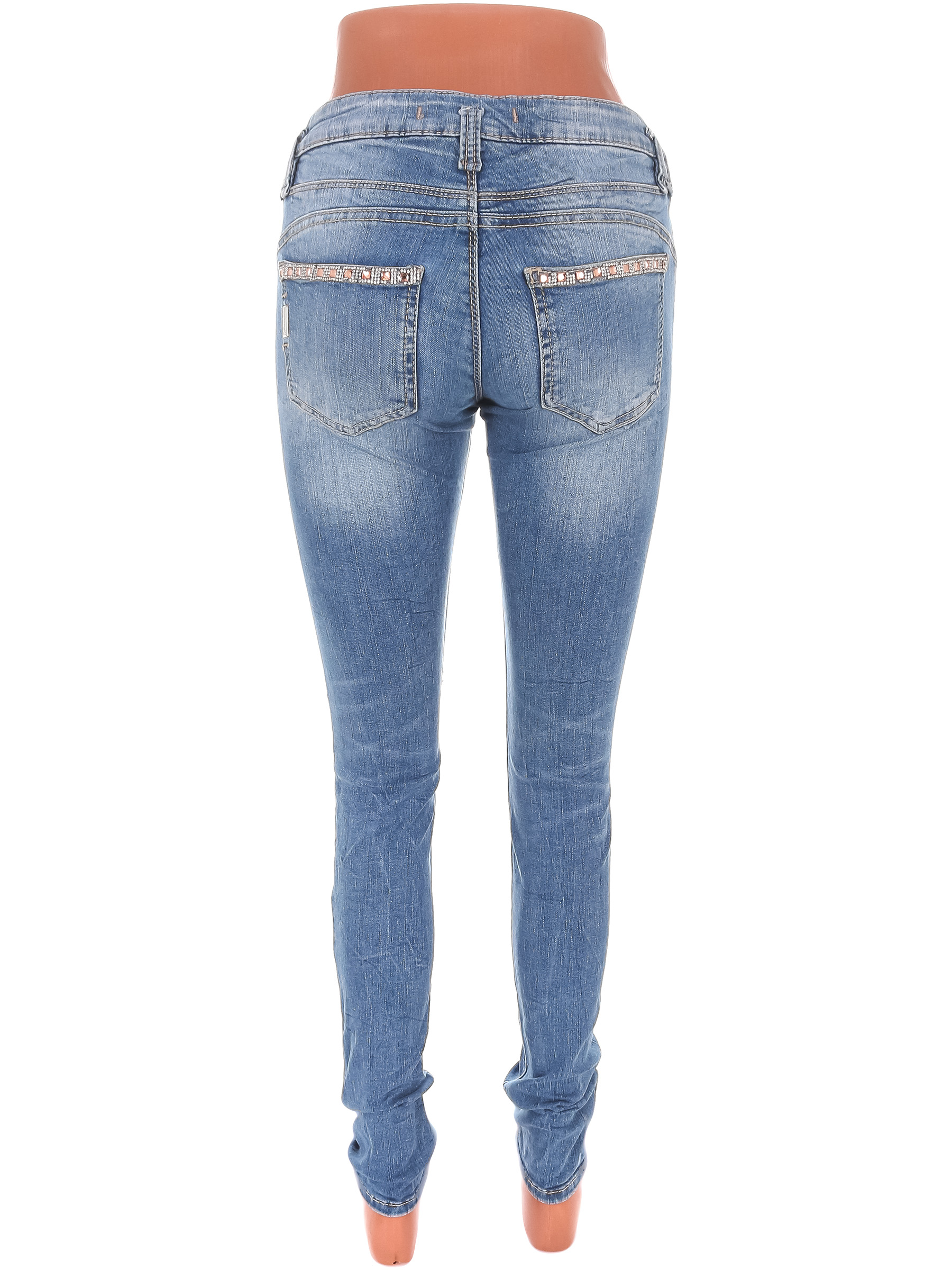 На штанине распускается строчка по шву. Ткань потускнела, выцвела, местами немного вытянулась, небольшие потертости материала.