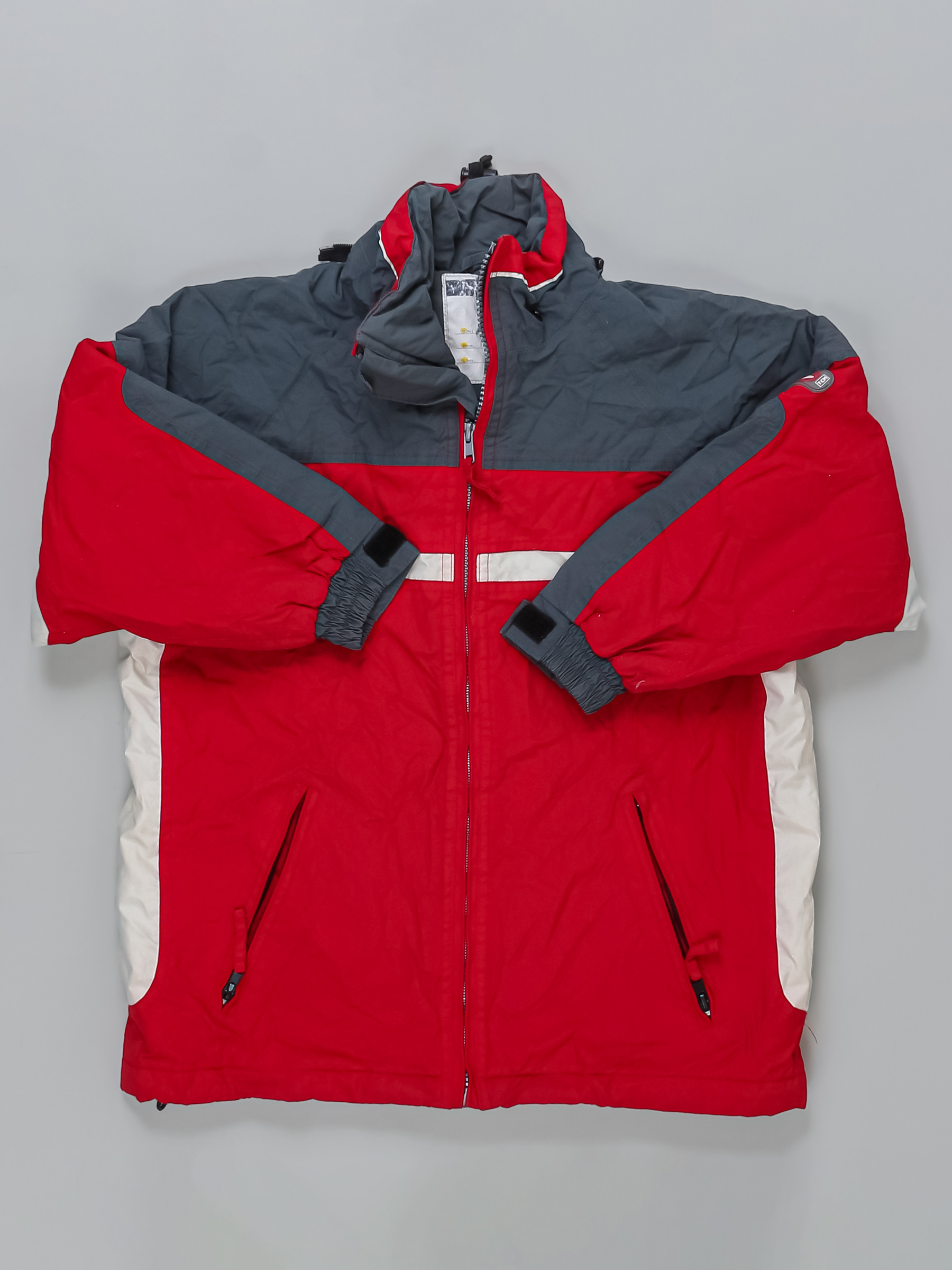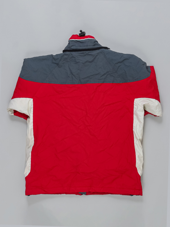 Цвет ткани немного потускнел. Есть мелкие дырочки на рукаве. Длина рукава указана от горловины.