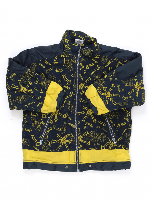 Есть небольшие загрязнения, снизу мелкая дырочка, на манжетах рассохлись резинки.
