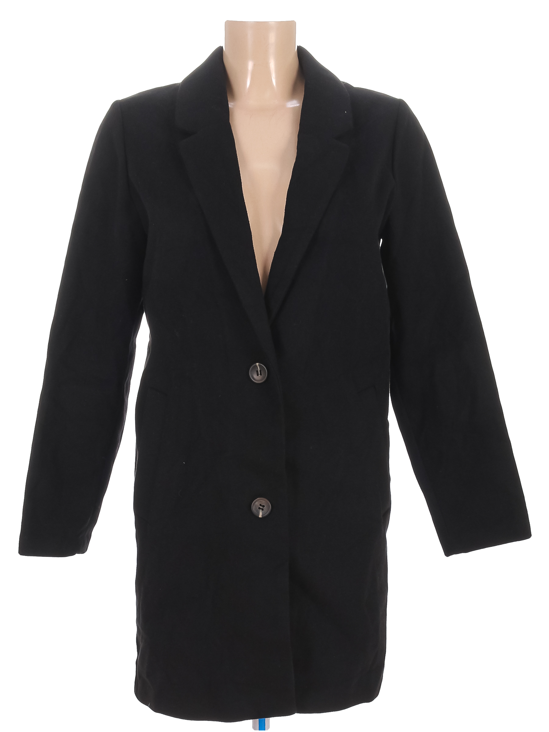 Тонкое, на теплую осень-весну. Есть катышки, небольшие загрязнения, ткань местами немного лоснится.