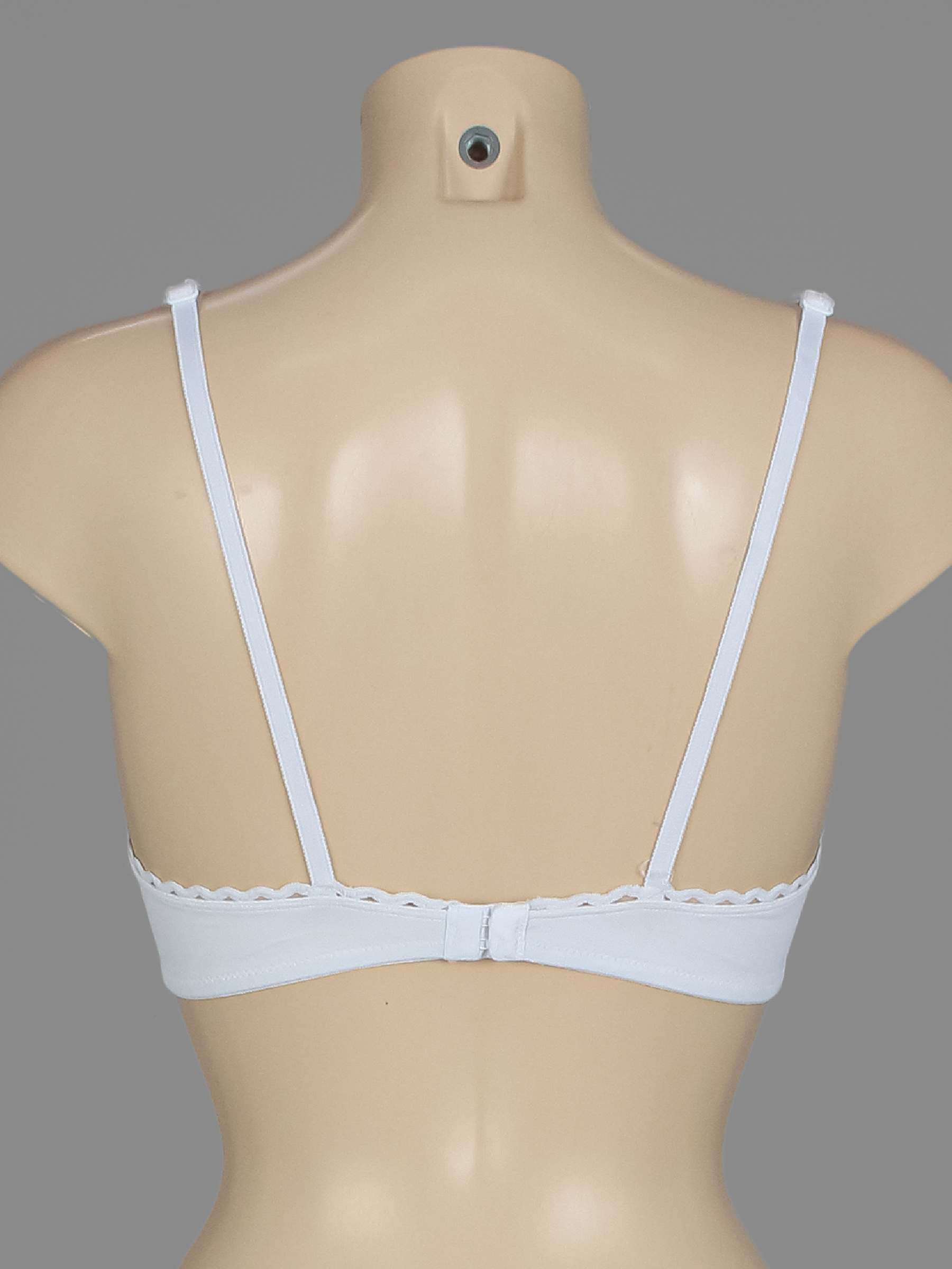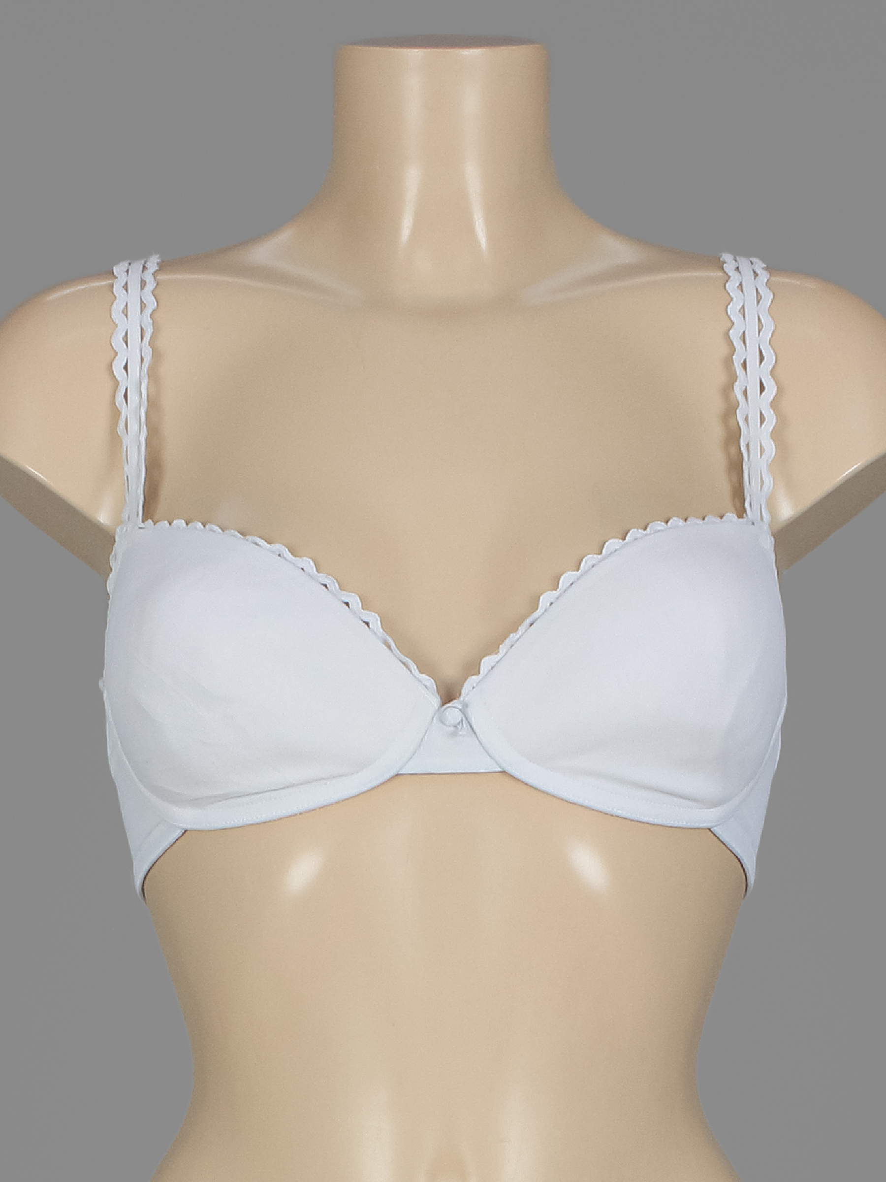 Маркировка на изделии отсутствует. Размер указан на основании замеров. Есть немного катышек и заломов. Бюстгальтер с голубым оттенком.